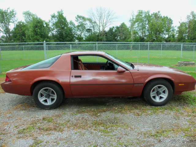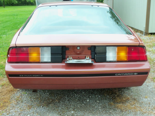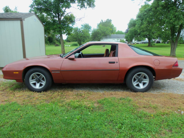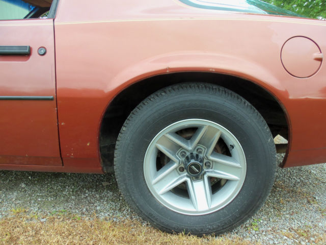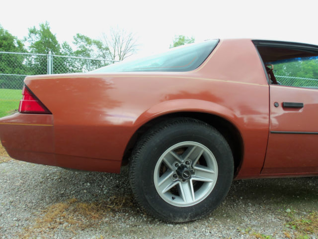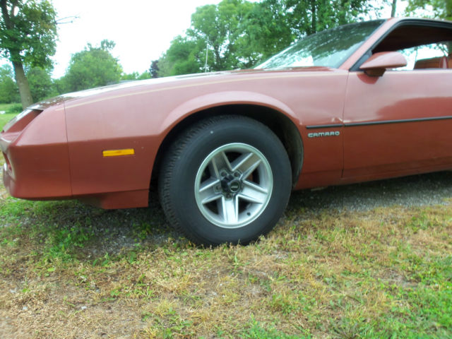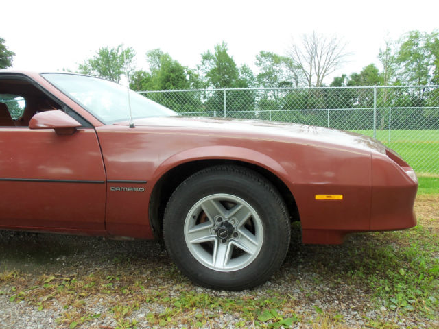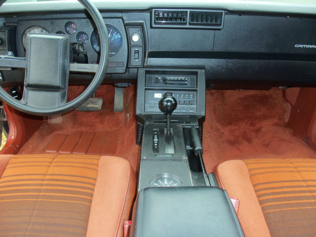 1985 Camaro with only 80,550 mi. I purchased this car last year from the second owner who had stored it since 1990 and only drove it occassionaly. I changed all the fluids and filtersexcept the rear end. New parts: Plugs, lug wires,cap and rotor. Replaced the front pads, otor hub assy and seals. Also the oxygen sensor, gnition resistor and head lights. The tires I put on are only 1 year old Firestones and the rims were professionally powder coated I still have the original steel rims. It still has the original AM/FM working radio and clock. The interior is in great condition except the headliner needs replaced and a spot on the carpet in the rear hatch area. The body is very solid, he paint is in condition for being, s far as I know original, ut there are imperfections. Small rust spotsunder right rear hatch and hood. Paint bulbed in front of left rear wheel but is not rusted. The runs and drives good with a slight roughness at idle, still need to change the fuel filter. Check eng. light comes on and goes off.If you have any questions please ask. I reserve to end the auction at any time. Local pick-up or the buyer is responseable for delivery.