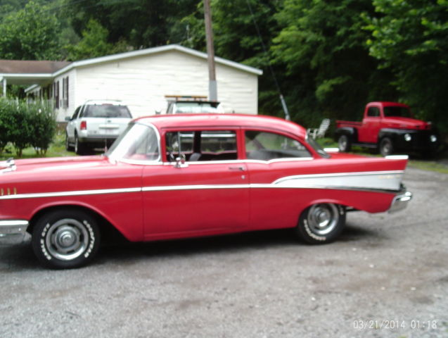 | up for sale is a 1957 chevy 2 door sedan it has a 283 with double hump heads the car runs good it is a driver not a show car the car looks good the paint is peeling on top it has a lot of new chrome on it the seats carpet an headliner are in good shape the car will need floor pan work on the driver side an both inner rocker panels an some floor braces . but you can drive this car as you work on it . this will be a as is where is auction so come check it out before you bid if you need to know anything call Donald at 304-875-3424 I may end the auction early the car is for sale localy |