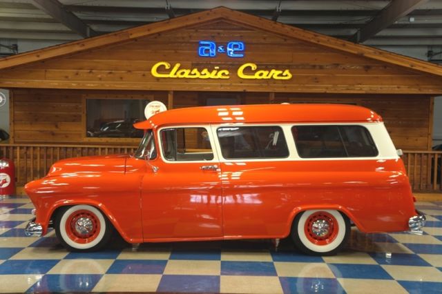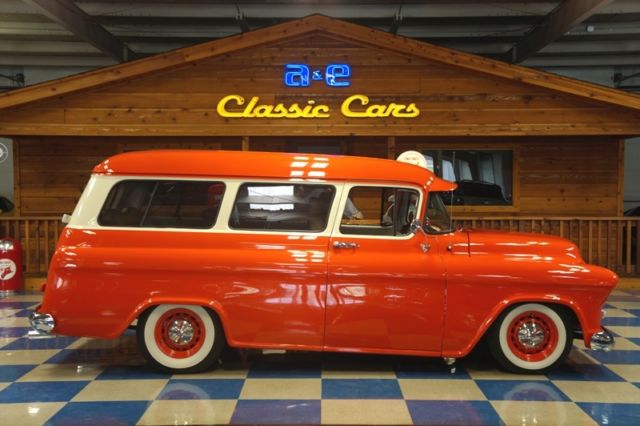 A&E Classic Cars is one of America's premier classic, ollectible, nd exotic car showrooms. We are dedicated to serving the car enthusiast. Simply stated, f you're "crazy" about cars, ou are now among friends. We continue to search for exciting vehicles, isit us at aeclassiccars.com (830)629-4843 New Braunfels, exas 1956 Chevrolet Suburban 350 cui small block ChevyAutomatic column shift transmission 10 bolt rear end Tan leather bucket seat interior with 3rd seating (interior pulled from a Lincoln) Power front disc breaks Power steering Vintage air A/C Chevrolet valve covers/ air cleaner Edelbrock intake and carburetor HEI ignition ECG aluminum radiator Stainless steel grill Sunvisor Dual exhaust with manifolds Leather wrapped steering wheel with chrome tilt column Dolphin tan series gauges Custom autosound stereo 15'' Chevrolet wheels with Coker wide white wall tires. Enjoy the car show and Take the family on a cruise.