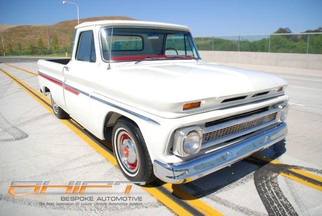 1966 Chevrolet C10 Pickup 1966 Chevrolet C10 Pickup! Over 100 photos www.ShiftBespokeAutomotive.com.Shift Bespoke Automotive is proud to offer this clean 1966 Chevrolet C10 Pickup! Bright White paint over Red interior. For yourconvenience we took a small library of photos in natural sunlight! Our camera lens has a small smudge inside the camera that needs to be cleaned, t shows a small cloudy blemish on every image. ItIS NOTa flaw on the car. Please feel free to contact us at 949-891-Cars (2277) FOR QUESTIONS, CHEDULE TEST DRIVES ORINSPECTIONS. Inspections are welcome and encouraged if you have any reservations. Keep in mind we ship cars worldwide - sight unseen! Vintage trucks are all whats in style right now! 1966 was the last year for the Fleetside pickups introduced in 1960, hich offered lower rooflines and a swept-back cab that offered industry-leading space and comfort, nd we wouldnt see such ornate trucks ever again. Bright Clean White paint over Red/White interior is stunning! to the smooth-running 283 under the hood, his cool pickup restored original. The Fleetside offered dramatic styling with lots of swoops and curves, s well as brilliant use of trim, nd all of it remains 100% intact on this example. this truck will be right at home both at local shows, each, ocal lumber yard or on a cruise night!. Refinished bed that isnt over-restored but rather just about how the factory would have done it.