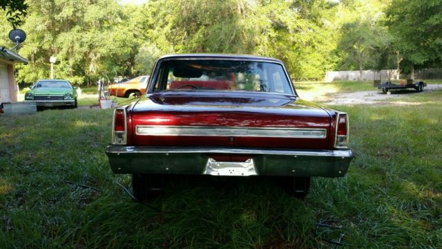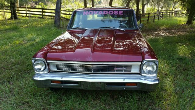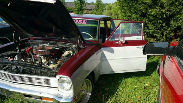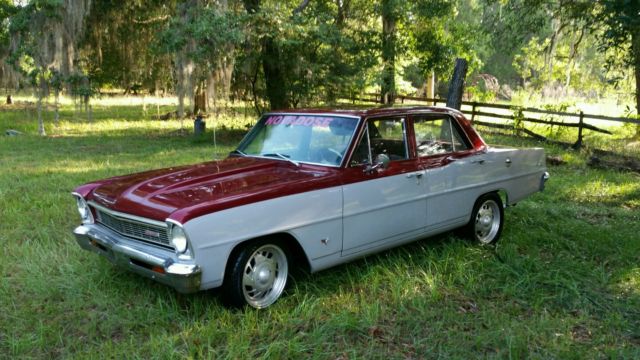 previously restored in 2008 and parked due to illness real head turner 4 door chevy ll nova 327 v8 dynode at 550 horse to rear wheels turbo 350 tranny and a 411 posi rear two tone hummer red and pearl silver great running and driving car very fast corvette power disc brakes flowmaster exhaust,so much has been done to this car located in Nashville Tennessee area I will help getting the car to transporter if less then 100 miles $500. deposit due 24 hours after end of auction this car is super solid bid with confidence