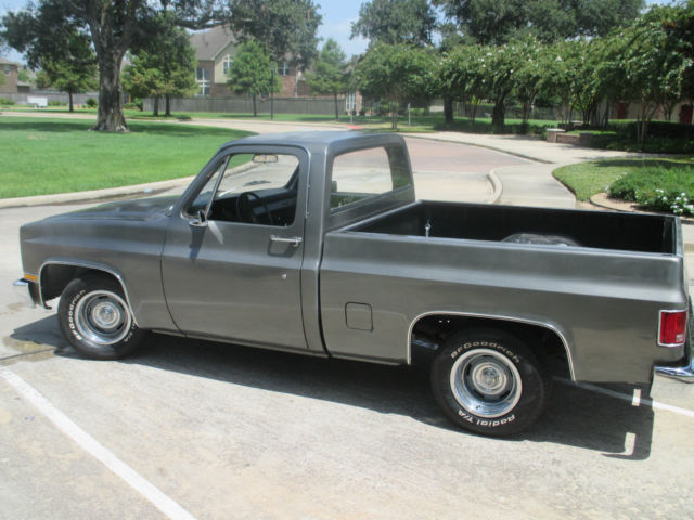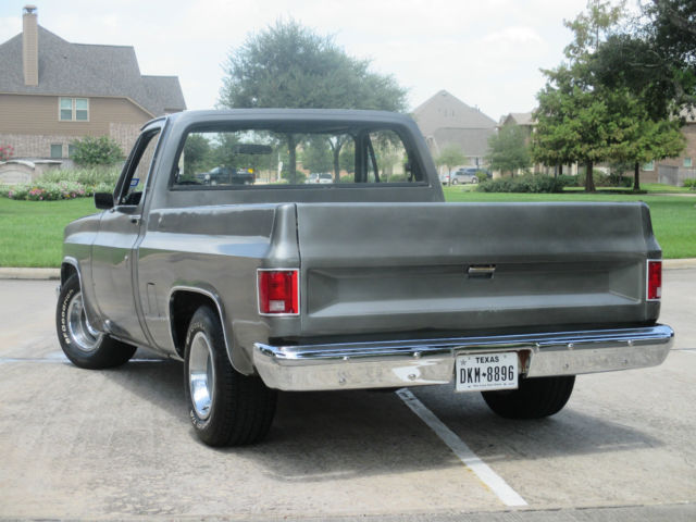Motor: 1998 350 Vortec (recent rebuild: 30 over, v cam, oller lifters), olley 650, oroso Oil Pan Transmission: Manual SM465, urst Shifter Milage: ~2500 on rebuilt motor Color: GM Greystone 213m (Original color was brown) Exhaust: FlowMaster knock-offs, ump before rear axle. Exterior/Body: