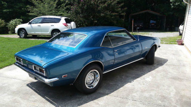 1968 Camaro Coupe, 27 with a Powerglide. Older restoration by previous owner, ll original except for the interior color, luminum intake, delbrock carb and Rally Wheels. The car will come with the original 2 bbl carb & intake, nd the original hub caps (the set that was on the car when purchased). Beautiful teal paint and black bucket seat interior (cowl tag codes the interior as blue). Car has always been garaged and has been driven very little over the past couple of years. Panel between the trunk and rear window is starting to show rust. See pictures. Car is for sale locally, eserve the right to end the auction. Car is located in SW Virginia and can be inspected by appointment. Selling car for my father, essage any questions and I'll pass them along. $500 deposit required within 48 hours of auctions end unless other arrangements are made. Buyer responsible for transport after the sale.
