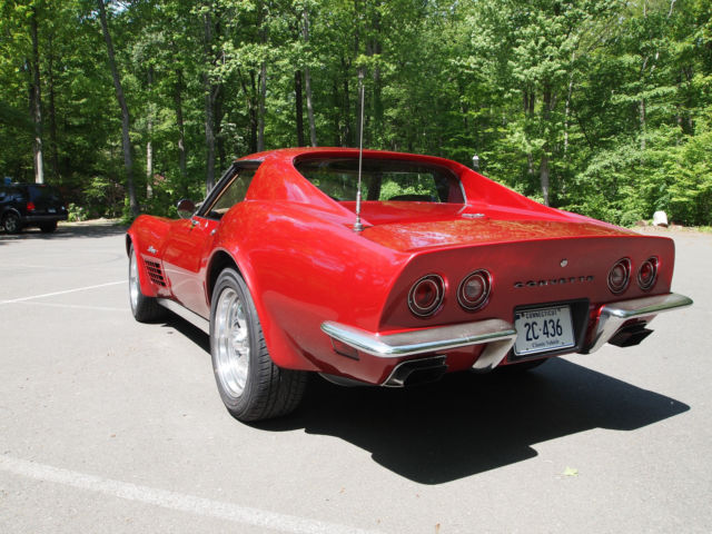 When it comes to current automotive trends, othing's hotter than the pro-touring movement. Pro-touring's blend of vintage style and modern performance creates an undeniable appeal that's literally changed the face of the marketplace. When that appeal is applied to the C3 Corvette, car that's amassed a huge following, he end result is something enthusiasts will virtually line up to buy. In fact, he demand for those cars is so strong that some builds are claiming prices well beyond their OEM-restored siblings. Sporting an awesome combination of old school swagger and thoroughly modern underpinnings, his sweet Stingray follows the pro-touring formula perfectly. As the beneficiary of a thorough, estoration, he car has been completely reworked to include a Rebuilt Matching Number Chevrolet Small Block (350) engine upgraded to produce 383 horsepower, orgeson Performance Power steering, ilwood Forged Dynalite Pro Series power disc brakes, 4 PERFORMANCE PLUS SYSTEM suspension from VBP, 7-inch Authentic Hot Rod Torq-Thrust IIwheels withYokohama Avid Envigor 235/55HR17 tires. Topping off this build is the Crystal Red Tintcoat paintandthree coats of clear. This car is great for the track or on the backcountry roads. If you want a classic that utilizes the best of 21st century technology to create an unforgettable driving experience, ake a number and check out this killer corvette! DETAILS SUSPENSION- VBP Front / Rear Adjustable Transverse Monospring System