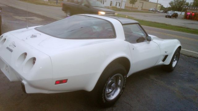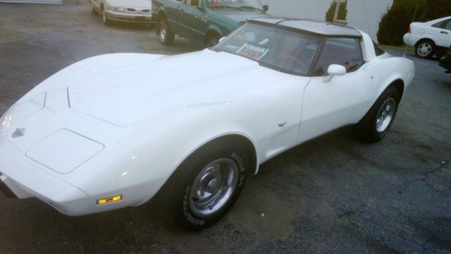 1979 white with red leather interior, 50 v-8 L-48, 4,000 actual miles. built in Canada KM.selling in the United States fresh restoratio, ew tires, ower steering, ower windows, es the clock works. Mirror t-tops with storage bags, ilt telescopic steering wheel, ear compartment shade. am/fm/ cassette, o rips, ears, r cracks, rame is immaculate, utomatic transmission. Care runs great, andles like a Dream! Please no international sales car is being sold as is, ll sales final! No returns! shipping is to be arranged by the purchaser, on refundable, 00.00 down. payment to be made through pay pal within 24 hours of auction end. do not bid if you dont have the money in your hand, r have to sell your vehicle in order to buy mine. Balance to be paid with a certified check, hich I must recieve within 5 days. Car will be released when check clears. Car is for sale locally, reserve the right to cancel the auction if the car sells locally.Questions: call Frankie 330-717-1469