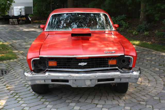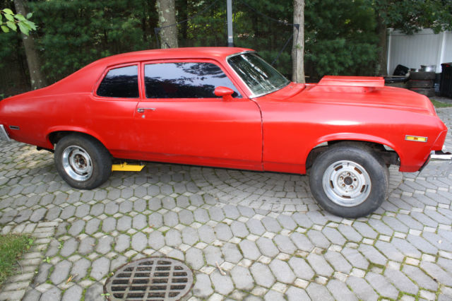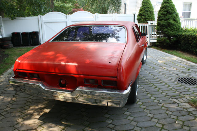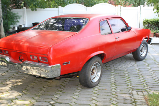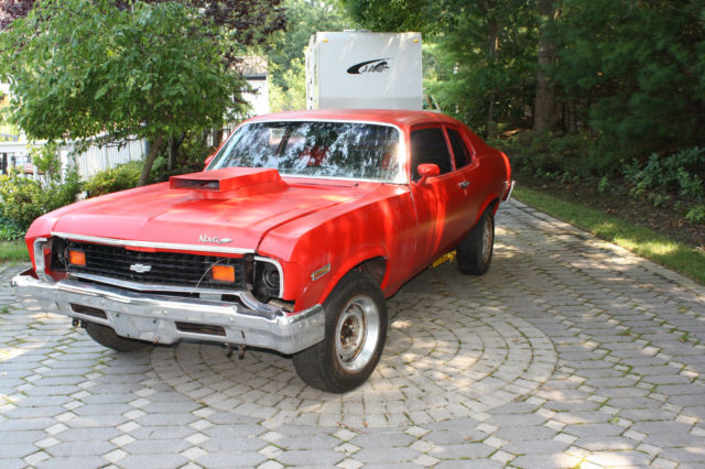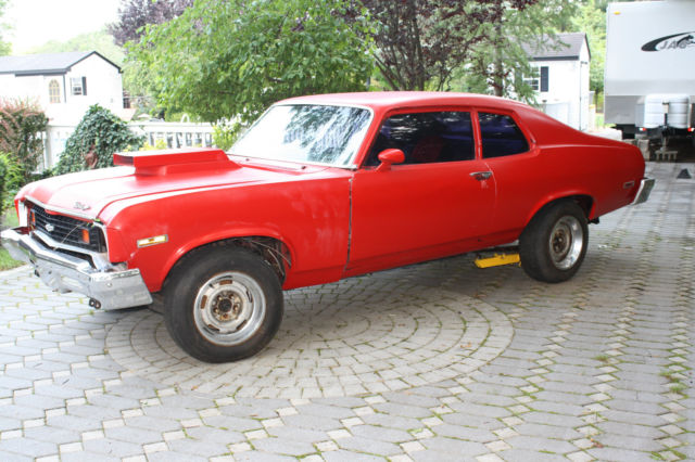 1973 Chevy Nova with 10 Bolt Posi Rear & 410 Gears. Car does not include engine ortransmission. Comes with big block front springs, ub frame connectors, iberglass hood, eft and right front fenders and trunk hood. Need paint and body work. Comes with automatic and standard transmission cross members. Car originally had a 4 speed - standard. Still has clutch peddle installed. Also comes with wiringharness, oll cage, ront fiberglass bumper and set extra set of tire and rims as featured in pictures. Feel free to ask any questions.