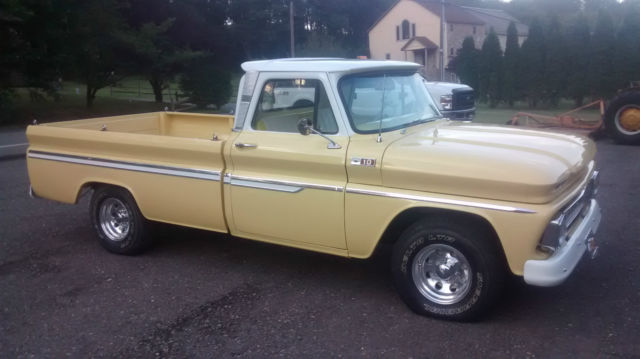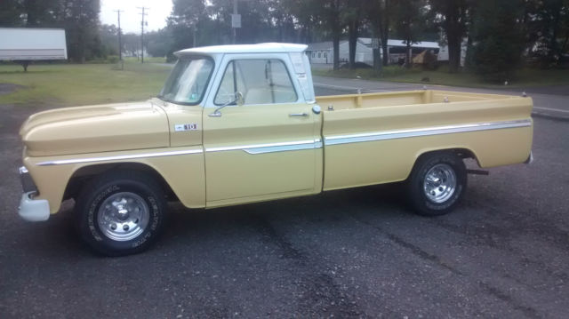 Up for bid is a 1965 Chevy C/10 pickup truck. Full frame off nut and bolt restoration was performed on this classic truck. New pain, New chrome and bumpers, M Stereo Radio, ngine and transrebuilt Very Clean6 cyl,three speed on the column.Underside very clean, ood bed restoredto look better thanNew. All new interiorupholsteryVery clean ready to drive truck.Truck has less than 250 miles since fullrestoration. I ENCOURAGE ALL BIDDERS TO COME AND PERSONALLY INSPECT AND DRIVE. You won't be disappointed!!! This is a super clean restored truck. For more info or to set up an inspection call(570) 956-8191 |
