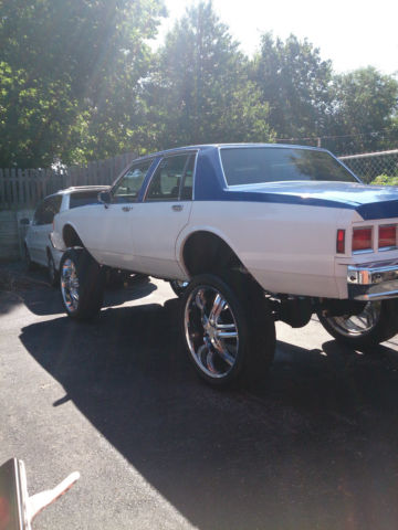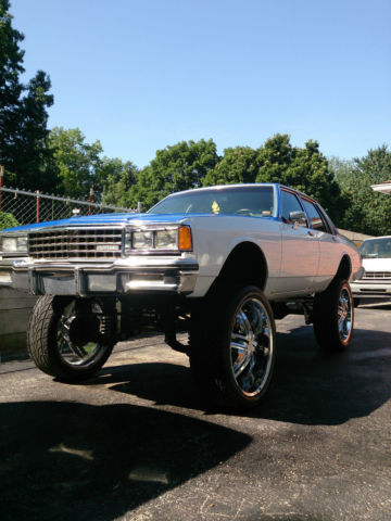 Ridiculously tricked out '84 caprice classic donked and horse powered. Where do I start??? *15" professional lift kit from universalcarlifts.com *Brand New 383 stroker engine with dyna tested 510 HP barely driven for 1 summer *40 series flowmaster has the Chevy tipped pipes sounding ridiculous *Boss Hogg torque converter, lectric fuel pump, dlebrock 650, igh output distributor w/platinum plugs and wires.. Too much to list. *26's w/biggest rubber made for 26's *Custom fiberglass mids wall and touchscreen head unit with 4 15" square kickers in custom box with 2 amp system, lus additional alternator and battery just to run the beat (you can barely sit in it it hits so hard). So this is a crazy deal, nd I've never had it out without ppl following me around with their phones out taking pictures and video.. Crazy. The pics are worth a thousand words, ll work done by professionals. Trunk and new speaker box need carpet still, nd some super minor rust on bottom of door and a couple of tiny dings on right rear quarter. Some new door seals maybe.. all minor stuff.