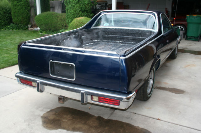 1983 Chevy ElCamino. 305 V8, utomatic. NO RESERVE AUCTION! A great opportunity to own and drive this classic while you restore it. Engine runs, nstalled new tires and power steering pump. Needs new A/C compressor, inor oil leak so needs new valve cover gaskets. Previous owner lived in California and bypassed heater — needs to be reconnected. No rust, ody in good condition, aint and interior in fair condition (please see photos for details). Please email with any questions. Selling the car locally so reserve the right to remove listing. NO RESERVE AUCTION. |