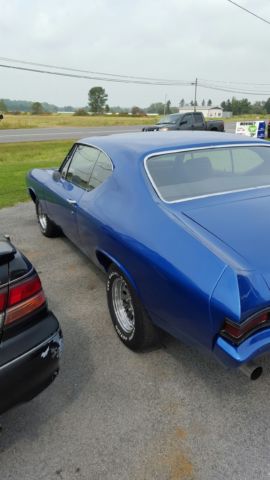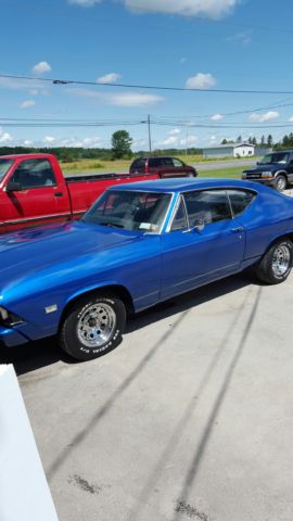 For sale is my 1968 Chevelle Malibu 454 Big block with 781 High perf heads with solid lifters, dlebrock performer intake,bigger cam, rand new Edlebrock 750CFM carb with electric choke, rand new fuel pump, ong tube headers, nd brand new 3" Flowmaster Super 40 header back stainless steel exhaust. Has a TH-400 transmission rebuilt with a shift kit. Brand new carpet and B&M ratchet shifter. Car has a 3.36 gear ratio with a 10 bolt rear end. All mechanical is done runs and drives beautifuly so much more new parts Painted a beautiful metallic blue. Car needs interior finished (seats reupholstered, ail panels) Willing to send any requested pictures of car. Car is located in Gouverneur, Y I cannot ship and I will not accept any sort of check, can only do cash upon pickup thank you!