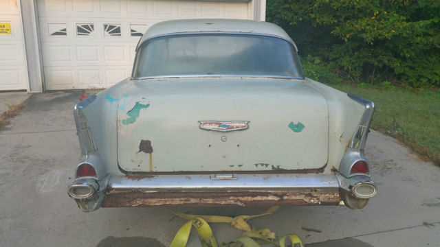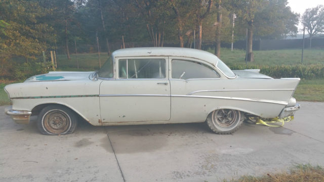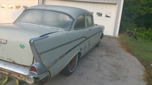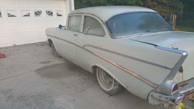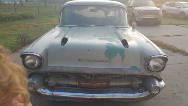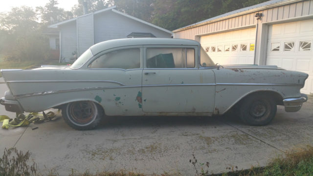 Here is an all original 1957 2 door sedan!!! This vehicle was recently discovered in a garage and has been sitting there over 40 yrs.!!! It's a 6 cylinder car with an automatic trans. As you can see, he car is in need of total restoration. All the trim is there except for the two chrome pcs below the headlights and the two chrome bullets for the hood and front fender chrome. The doors on this vehicle close smoothly and tight. All of the glass is in good shape except the drivers door which is cracked. The floors are rusted along with the trunk area. There is also some rust on the frame rails. If you have any questions feel free to call me at (219)669-2440. My name is Rex. This vehicle is located in Lake Village Indiana and can be picked up here or I can deliver for a small fee if within less 200 miles.