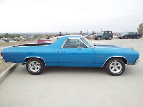 | Thanks for your interest in the 1970 El Camino. The vehicle does have Texas plates and the title is clear and clean. The vehicle has been kept in a garage no rust. 383 crate engine newly installed ($7000. 00)-has approx. 200 new miles. Painted a couple of years ago ($ 7000. 00)-tire and rims are new ($2000. 00)- interior is new ($1. 00. 00)- Chrome trim was $2. 00. 00. Has new tires and rims and the interior has been re-upholstered. The bed liner is a spray-on non skid surface. All gauges work (they are the round gauges). |