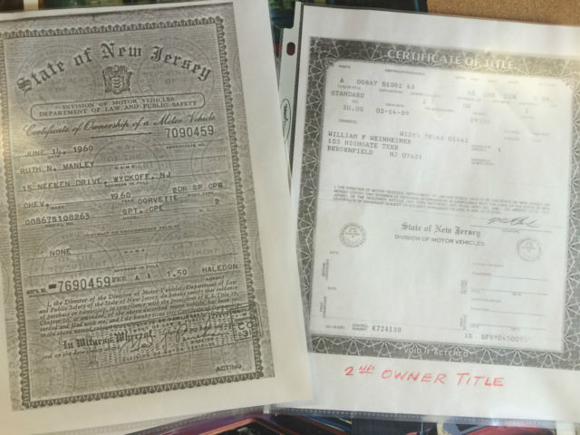 1960 CORVETTE-ORIGINAL ENGINE/MATCHING NUMBERSRADIO DELETE- 283/230HP withpower glide automatic transmission.Honduras Maroon with White coves and Black interior.35,486 original documented miles. Convertible top. Excellent condition inside and out. One repaint in 2001 to match existing. Always garaged, ell maintained, nd rarely used by all three owners.First owner only used 1,000 miles per year for 27 years. Second owner 300 miles per year for 12 years. Third owner 400 miles per year for 6 years. Excellent, eautiful, are, lassic 1960 Corvette. Mechanically excellent, reat driver.On Aug-31-15 at 08:37:07 PDT, eller added the following information: All original panels NO-HIT BODY! If you have any questions please call 973-390-1909. On Aug-31-15 at 14:35:09 PDT, eller added the following information:Dry & Solid Chassis.