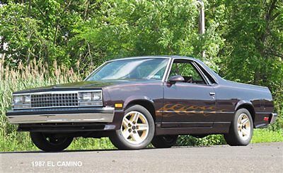 PRICE REDUCED WOULD YOU KNOW A GREAT OPPORTUNITY IF YOU SAW ONE? THIS STUNNING EL CAMINO IS YOUR OPPORTUNITY! PURCHASED BY THE PRESENT OWNER 13 YEARS AGO IT HAS BEEN DRIVEN LITTLE, N FACT ONLY 167 MILES IN THE LAST 9 YEARS (77 MILES / YEAR). THIS CLASSIC TRUCK RUNS BETTER NEW OWING TO A CRATE ZZ4 MOTOR (FROM BRYNER CHEVROLET) WITH EDELBROCK EFI THE 700R4 AUTOMATIC OVERDRIVE TRANSMISSION IS A VAST IMPROVEMENT OVER THE STOCK 3 SPEED AUTOMATIC. PHOTOS DON'T DO THE BODY AND INTERIOR JUSTICE. THE NO RUST EVER RAZOR STRAIGHT BODY HAS BEEN PROFESSIONALLY REFINISHED WITH ACCENT HAND PAINTED PINSTRIPES AND VINYL GRAPHICS THAT COMPLIMENT THE IROC -Z WHEELS. NATIONALLY RECOGNIZED ED BRODY HANDLED THE PINSTRIPES AND GRAPHICS. THE LACK OF USE HAS RESULTED IN MINOR MECHANICAL CONCERNS. CHIEF AMONG THEM ARE THE FOLLOWING: THE HEAT AND A/C CONTROL DOES NOT WORK SO WE CAN'T DETERMINE IF THE HEAT AND A/C ARE OPERATIONAL. THE FRONT ROTORS NEED TO BE REPLACED THE TIRES ARE 17 YEARS OLD OUR SHOP IS EXTREMELY BUSY AND WON'T BE ABLE TO RECONDITION THIS TRUCK FOR AT LEAST A MONTH SO WE HAVE REDUCED THE PRICE TO MOVE IT ON. ALL IN ALL YOU HAVE TO AGREE THE POSITIVES CLEARLY OUTWEIGH THE NEGATIVES. BUY WITH CONFIDENCE. CALL US FOR A COMPLETE DESCRIPTION OF THIS FABULOUS TRUCK. REDUCED FROM $17,910 TO $13,900 CLOSE OFFERS AND TRADES CONSIDERED As with all the cars we offer, we encourage independent inspection. "WE ARE ALWAYS LOOKING FOR COLLECTOR CARS - BUY - CONSIGN" PLEASE CHECK OUR 100% POSITIVE EBAY FEEDBACK AND BUY WITH CONFIDENCE. Questions: Please feel free to contact me, ayne, irectly 1-888-443-5612 or email woodruffw@oldforgemotorcars.com Mon-Fri 9-6 eastern time Sat 9-3. I love cars and I'm often available other times as well - even Sundays. AS-IS: Most of our cars are front line exceptional cars but due to their age all of our cars are sold as-is, here is with no warranty expressed or implied by the seller. CLEAR TITLES: All of our vehicles have clear titles. BIDDING: You must be 18 years of age or older to bid. Your bid constitutes a legally binding contract to purchase the vehicle. Please do not bid if you're not seriously interested and financially able to purchase this vehicle. Please read eBay's "User Agreement". If you have questions about the vehicle or questions about financing options please contact me prior to bidding Wayne 1-888-443-5612 or email woodruffw@oldforgemotorcars.com. NEW TO EBAY: Please contact me - Wayne, rior to bidding 1-888-443-5612 PRESALE INSPECTION: We strongly encourage you to have an independant pre-sale inspection performed. At Old Forge Motorcars we try our best to describe in detail through text descriptions and through numerous photos the condition of our vehicles of course when you purchase any used vehicle it is not new and will have signs of use including stone chips, cratches, cuffs, nterior wear etc. However we are human and can miss some things therefore Old Forge Motorcars its employees and its agents will not be held accountable for errors, missions or typographical errors in our descriptions. It is our promise to you to be totally open when offering information about our vehicles. Should you choose to have an independent pre-sale inspection please do not bid until the inspection is completed. AUCTION EARLY END: We advertise extensively and all of our vehicles are available for sale at our dealership, herefore we reserve the right to end the auction early. We also reserve the right to cancel bids at our sole discretion, or any reason. We will not be held liable for any such cancellation. If you'd like to buy early call Wayne at 1-888-443-5612. FINALIZING YOUR PURCHASE: The winning bidder must contact us 1-888-443-5612 or woodruffw@oldforgemotorcars.com within 24 hours of the end of the auction to make arrangements to complete the transaction. We require $1000 USD deposit within 72 hours of the end of the auction, ull payment within 7 business days. If we cannot confirm your intention within 5 days from the end of the auction we reserve the right to relist the vehicle or sell it to any qualified buyer. Before the vehicle is released for shipment to the buyer all sales related, itle related and other legal requirements must be met and where required signed completed and returned to the seller. A $112.00 USD document fee is required for each sale. Out of state (Pa) buyers may choose a temporary 30 day license plate and registration for only $35.00. Other fees and taxes may be applicable. LOCATION: We are located in Lansdale, ennsylvania (southeastern Pa) a suburb of Philadelphia, he same convenient location since 1982 - we are close to Pa East West Turnpike as well as the Northeast Pa Turnpike. HOTELS: We have arranged for discount hotel rooms if you plan to visit. AIRPORTS: Philadelphia International (PHL) Lehigh Valley International (ABE) airports are within 45 minutes. CONSIGNMENT VEHICLES: For the descriptions of consignment vehicles we rely on the information provided to us by the consignor. OLD FORGE Motorcars Inc attempts to verify the information provided but will not be held liable for any discrepancies contained in the above description.
