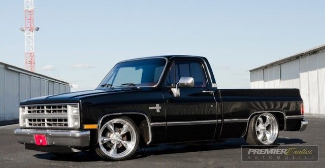 1986 Chevrolet Silverado Premier Exotics is pleased to offer this 1986 Chevrolet Silverado Pickup. This truck has the right wheels and stance and drives like it should. Finished in Black paint with a Burgundy Interior. THESE TRUCKS ARE WHAT EVERYONE WANTS! Black Exterior Burgundy Interior (New Seat/Headliner) 350 V8 350 Turbo Automatic Transmission Power Steering Power Brakes Factory Air Condition 5/7 drop C-Notched Drop Spindles/Rear Flip Kit NEW K5 Rear Bumper NEW Window Trim (Front/Rear) NEW Body Trim NEW Rear Glass NEW Tail Lights NEW 20x8 & 20x10 Polished American Torq Thrust Wheels NEW 245/35/20 & 275/40/20 Tires This is a great running and cool shop truck. Its ready togo! Check out our other cool trucks for sale! Please contact Bobby with any questions at 270-393-2822. All advertised prices exclude government fees and taxes, ny finance charges, ny dealer document preparation charge, nd any emission testing charge. The price for listed vehicles as equipped does not include charges such as: License, itle, egistration Fees, tate or Local Taxes, ealer Prep, mog Fees, redit Investigation, ptional Credit Insurance, hysical Damage of Liability Insurance, r Delivery Fees. DEALER makes no representations, xpressed or implied, o any actual or prospective purchaser or owner of this vehicle as to the existence, wnership, ccuracy, escription or condition of the listed vehicle's equipment, ccessories, rice, pecials or any warranties. Any and all differences must be addressed prior to the sale of this vehicle.