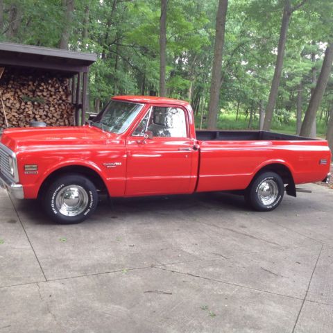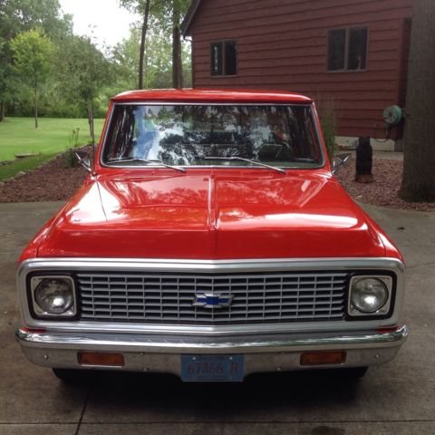 Up for auction is my 1972 Chevy C10 Custom Deluxe Pickup. This truck was originally sold in Lakewood, olorado. I've owned the truck for 23 years. It has all of it's original sheet metal other than both rocker panels which were replaced with GM parts when I had the truck repainted in 1995. The interior seat cover and carpet were also replaced at that time. I also have the original wheels and full wheel covers that came on the truck in 1972. The truck runs and drives as it did when new. The engine is the original numbers matching 350 4bbl, ith Turbo 350 automatic transmission. This is a very original and unrestored survivor vehicle.I also have the original window sticker. The truck has power steering and brakes, nd AM/FM radio. Happy bidding!