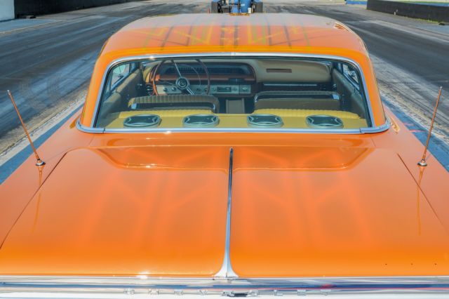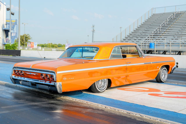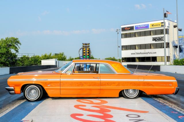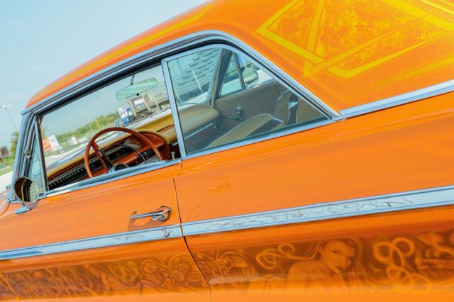 Exterior Paint is House of Colors "Spanish Gold" Candy with light metal flake, host patterns & Muralson both sides of car. Hood and trunk has some patterns, he top has lots of flake and multi color patternsthat change color. Hydraulic set-up2 pumps, 0 switches,6 batteries"Street Edition" from COOL CARS ENGINEERING front cyl. 8" back cyl. 14" all four corners andengine cross member re-enforced, ish-bone installed on the rear end and telescopic drive shaft.Croker tires(5.20s)with less then 10 miles of use, 3"x7" chrome wire wheels. All chrome exterior trim, nterior trimand most of the engine compartmentis triple plated chrome(show chrome) by METAL FINISHING MARKETERS. 350 engine rebuilt by CUSTOM MOTORS, dlebrock4 berral carburetor with Endura shine to give it the chrome look, ngine block painted to match the exterior, lectric fan to cool the engine, luminium 3 row radiator, erpentine beltpullys aluminium polished kitfromBILLET SPECIALTIES, 00amp chrome alternator and flow master exhaust. New EZ wiring kit with 21 circuit fuse box, ower steering gear box upgraded to a 605. Weather stripping and window seals are all new, ll window guides or rollers have been replaced. Transmission is a 2 speed powergluide (rebuilt). Stereo has the original look with modern internal components (model USA-230) sold by classic car stereos,2 JBL power series amplifieres, pair of 6x9 3-way power series speakers and 1 pair of mid-range 5 1/2" narrow speakers allmade by JBL. Sheet metal replacement: passenger side full quarter panel, ull trunk replacement and both passenger/driver side floor inserts were replaced. Note: Impala is not a frame off restoration, ll inner wheel wells, ear end, ear trailing arms, ront A-Arms, runk and exposed sections of the frame have Black glossy under coat. Floors under carpet have the black under coat and sound detuning insulation. Defects Disclosure: Rear passenger quarter panel missing 2 letters that will be installed before this auction ends. Trunk missing Impala ss emblem. Front grill missing Chevrolet emblem. Small dent on fender passenger side behind chrome eyebrow just above head light(no damage to paint). Small paint chip no bigger then a BBon fender driver side and another one on the driver side quarter panel between driver door and rear wheel. Buyer Read Before Biding... Buyer is responsible to schedule the pickup for the car once auction is over at buyers expense. The Buyer is responsible to have the car inspected by an appraiser or mechanic of your choice if you choose toobut must be within a 25 mile radius of Owasso, klahoma. Seller will be responsible to take the vehicle to the appraiser or mechanic for inspections at buyers request. Buyer is responsible for the cost of any inspection. Buyer is purchasing the car AS-IS no Warranty is available. Down Payment of $1,000. will be required 24 business hours after auction ends and full payment of the remaining balance is due no later then4 business days after auction ends. If no payment is received as described above vehicle will beput back on ebay for Sale.Seller can end auction at any time if sold locally. |