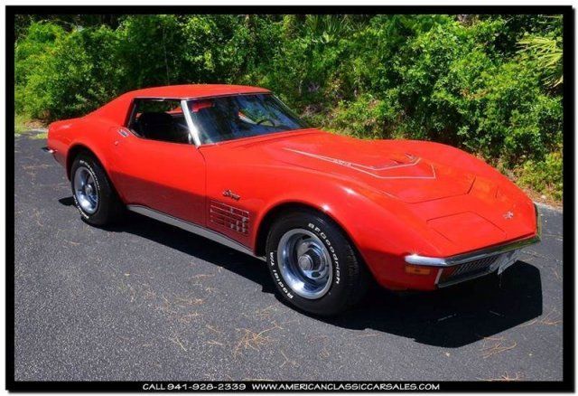 1972 Chevrolet Corvette LT-1 with A/C. This is a low mileage, atching #'s car that is mostly original. The LT-1 equipped with air is an elusive, ltra rare and extremely desirable car to nearly all Corvette Collectors. This is one of only 240 LT-1's with Air Conditioning ever made. 1972 was the last year the Corvette could be ordered with the legendary LT-1 engine. This is a limited production, igh performance 350 cid engine that Chevy only offered from 1970-72. It was also the first and last year that air conditioning was offered with this engine. I've been specializing in Corvettes since 1986 and I have been asked about '72 LT-1 A/C cars 100's of times and have always simply disregarded the requests because nobody can never locate any. This is the 1st time I have ever seen one in person. It is a very nice and very original car with low mileage and all original body panels, rame and most other non-wear items unaltered. The paint has been refinished in the original, orrect shade of Mille Miglia Red. But other than that, nly routine maintenance items were replaced. All the tell tale idiosyncrasies and points of interest are in place that should be showing on an unmodified, riginal Corvette. The chrome, rill, ost lights, enses, rim, irrors, andles, lass, tc. are all correct and in great shape. The interior is remarkably clean considering it is original. It's nicer than most because it has the optional deluxe leather trim interior. This option package includes wood grain accents on center console and door panels and plush, ut pile carpeting. All LT-1's are equipped with the manual 4 speed close ratio transmission and this car also has the power steering and power brakes. Get a shipping quote, pply for a loan and watch the video of this car at www.americanclassiccars.com