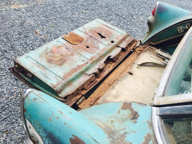 This is a 1955 Chevy Nomad. It has the original paint on the car and has been sitting for a long time. Car has no motor or transmission. Car will need new floor pans. The driver side door and the tailgate will need to be repaired. There is some rust on the roof. Included in the auction are new floor pans with braces. There are a few interior trim pieces missing. The Car has a clear NC Title. Local Pick Up or Buyer Must Arrange and Pay For Shipping. Car Sold As Is. |