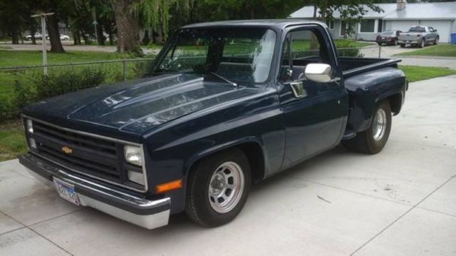 1985 Chevrolet C-10 Pickup For Sale in Elk Pointe, outh Dakota 57025 This Chevy Pickup has been so well-maintained that it is close to being a "Show Truck". It is a clean, alt-free Arizona truck. It is just like new and a joy to drive, ith only 34,000 actual miles. Turn heads anywhere you go with gorgeous dark blue paint complimented by a light blue interior. Additional features include a new lowered front end, ew small block Summit racing engine, ully synchronized 4-speed tranny with Hurst shifter, ew Mickey Thompson narrowed rear end 411 posi. Tubed with 29.5 x 15 Mickey Thompson tires, adder bar suspension. mew tires & wheels on front, nd PS/PB & hydraulic clutch. You will not find another 1985 C-10 Pickup in this condition for the asking price, o don't let this one get away! Call today for more information on how you can get behind the wheel. |