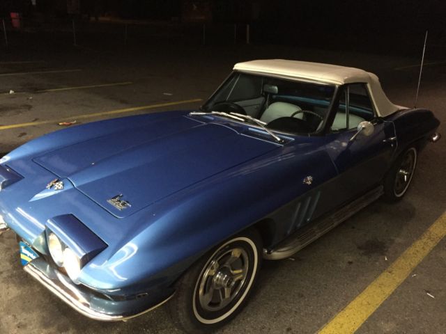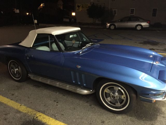 This 66 convertible is one of the best driving VETTE I have owned. If you are looking for a VETTE to drive and enjoy at a very fair price this is it. HERE IS FACT! You can buy a fixer upper that will nickel and dime you for $25000 to $35000, r a show car you will be afraid to drive and enjoy for $55000 to $65000 or you can buy mine, rive it anywhere with no worries, ever lose a dime and probably make a profit if you need to re sell her. Serious buyers only. 973-876-1776. I have seven classics to sell, ave owned mid years for over 30 years and do not need money so once again just call and I will be glad to spend time giving you an actual description with no BS. THIS IS SIMPLY A GREAT CAR BUT NOT COSMETICALLY PERFECT. NEW TOP AND INTERIOR, TARTS EVERY TIME, VERYTHING WORKS, 27 4spd power steerin, rakes, ide exhaust, nd I drove her from jersey to Nashville and back and it was wonderfull. Look at my other cars being listed one by one then if you like what I have to offer simply use that old fashioned tool called the telephone (please) delivery available. Clean rust free frame.