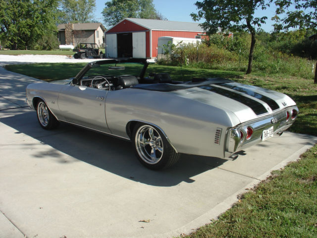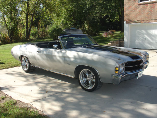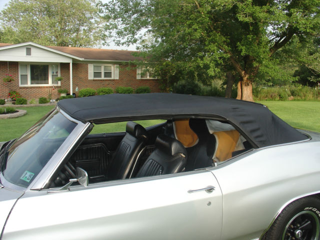 Selling a driver quality chevelle convertible in need of restoration.I am third owner.Newer vortec 350 with a nice cam,headers,4 barrel, luminum heads.12 bolt posi with 3:31 gear with factory sway bar.new 350 turbo trans with shift kit.Equipped with a/c which blows cold,cruise control needs vaccum parts currently unhookedJust installed new carpet.Top is good with one small rip about 3 inchs..Hood flapper works.Glass all good.Bumpers are pitted,Stainless is good and all there.New tires new 17/18 torque thrust wheels,ccp lower suspension with big front sway bar.I do have stock one.new gas shocks,dual flowmasters.Car runs great.new front end aligment.It is driver quality with rust here and there.Has had quarters replaced at some point.Previous owner painted silver.Was a green car originally.This is a great car for restoration or drive just the way it is as i do.Good luck bidding!I will not reveal reserve.If you are interested make offer.God bless our troops! I also have The original stock ss wheels that go with sale.
