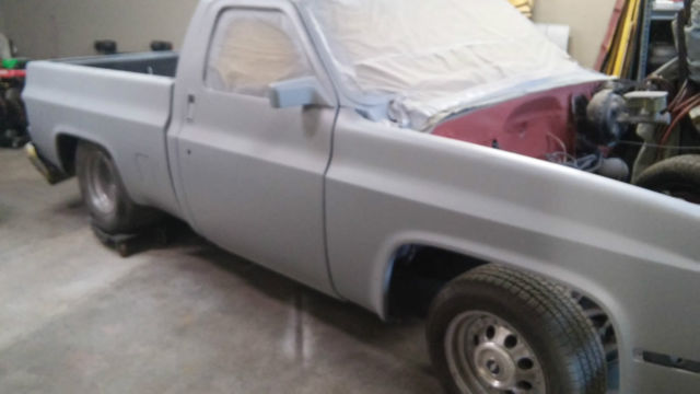 very clean bed shaved tail gate cab has been chopped all glass in good shape new cab corners floor boards need some work new inner fenders have all interior in decent shape no rips or tears. has new lowering spindles, arms, all joints, ie rods rear frame has been notched and welded to fit a Camaro rear end that is mounted on top of leave springs .new aluminum radiator and fans 350/350 motor trans crager rims backs are very wide looks tubed rims are decent chape tires are good .going to list this item locally tooauction will end if sold.