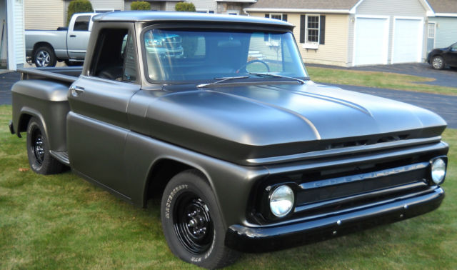 1966 Chevy C10 Pickup "Custom" Buit By Krazy Kustoms Frame off restoration Rebuilt Orig. motor and Trans, 6 cyl 250, spd. on the floor All New Brakes,and lines, All Glass Suspension Rubber seals,moldings locks,handles Birch Bed, All Modern style Gauges Tire, 6 lug rims Completeexhaust Front and rear bumpers. All new lighting Am/Fm Cd player Custom House of Colors Galxie Gray With Black Accents. Brand new Complete Custom Inter, Black and gray,Red New Gas tank relocated to rear of the truck. Front and rear bumpers have been reversed Frontdirectional'shave been moved to custom grill For a cleaner Look. Racing style gas cap in the back 1966 Corvette tail lights in rear fenders Body and paint excl. cond. AbsolutelyNO RUST Custom Interior was donetastefully excl cond. This truck get thumbs up everywhere I go. If you want somethingdifferent and cool This Truck is for you. This is a 1966 truc, 9 years old. There noWarranties orGuarantiesapplied To sale of the truck, he truck will be sold in AS ISCONDITION. Please do not bid if you can not afford to pay. If you have any questions please call me at 978-502-4064, Thanks for Looking, ike