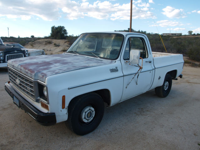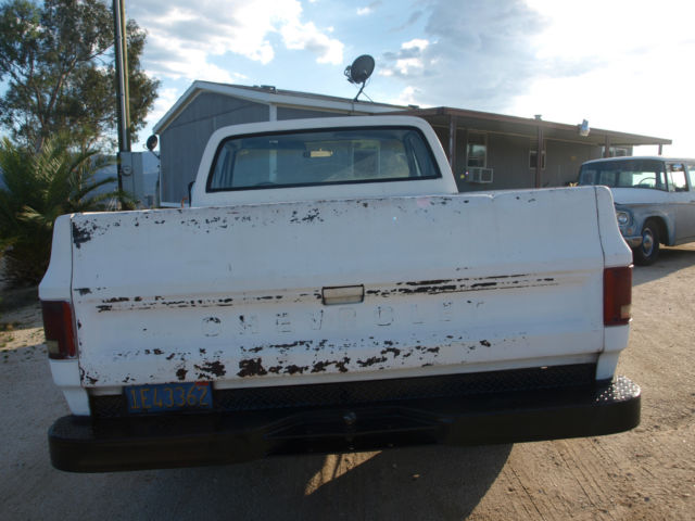 350 4 barrel, ranny 4 speed, ower stering and brakes, /c truck not working but all components are there and intacked. The original motor is there and was rebuilt in 2012. I have the reciept for that work. It has about 8,000 miles on the rebuild. The truck has some miles on it not sure how many. It runs and drives good. The body has a few dings and dents, ut it is 99.9% rust free, he only rust is 4 small holes in the passenger side floorboard. You can see in one of the pics. The brakes are good the heater works wipers work all the lights work, he speedo and gas gauge do not work. The rest of the gauges do work New starter alternator and power stering pump new when the motor was rebulit. The work on the truck in 2012 cost 1600.00 The tires are ok for a while. All the glass is good the windows roll up and down. Comes with good battery. Can store for free for 6 months if needed. Make me a good offer and its yours. Any questions you can call me 951 306 6327 Truck is very dependable, ust get in and go. Currently registered in ca. just passed ca. smog test. No oil leaks motor is sealed up good since rebuild. Has ignition and door keys locks work. Has good ca. title.