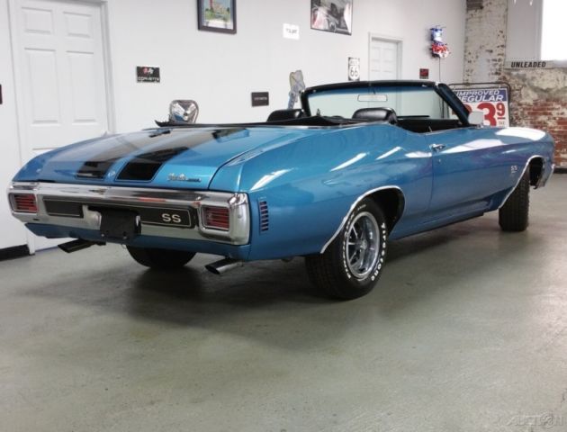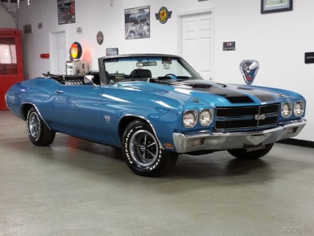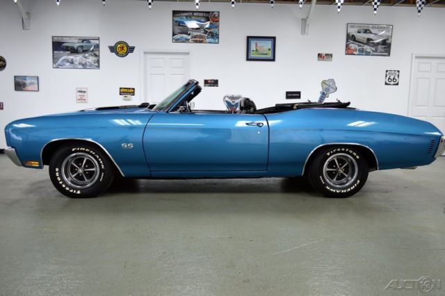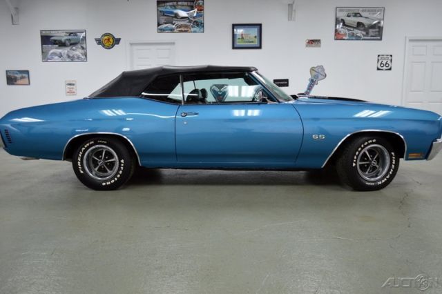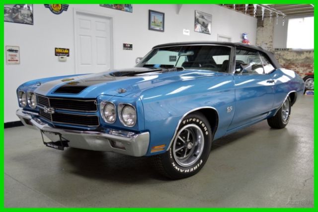 Iconic Year for GM Chevelle 1970 Chevelle "SS" Convertible Astro Blue/Black Paint code 25 396/325 hp correct casting number engine Turbo-HydraMatic Trans Factory A/C (still missing some parts) Power Steering/Brake Power soft top SS Wheels/Firestone Firehawk RWL tires. Aftermarket Radio Full Functioning Cowl Induction hood, lack Stripes, ucket seats, orse shoe shifter in Full Center Console! New seat covers. $8,500 in receipts on $$$$ spent on mechanics on this vehicle. (Comp Cam) what a awesome sound!