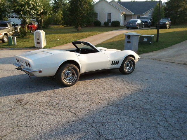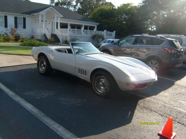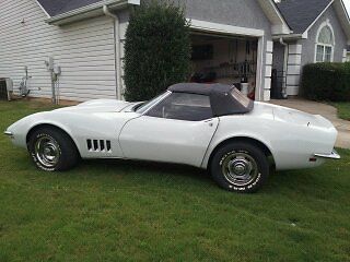 I'm selling this because I am unable to finish due to needing spinal surgery and cant finish. I think this is a fair price to start,especially for what has been done to it.I have pretty much restored 80% of this car. Everything is torqued to spec by the book. It has new breaks/master cylinder, ebuilt calipers, new discs, new wheel bearings, -joints, ushings etc, new struts/shocks, new power steering conversion kit, ear end redone, new trailing arms, new leaf spring, new gas tank,new headers, new exhaust, new battery and alternator, o chroming out the engine- 350 not original 327- with new intake,carburetor, new valve covers, new distributor, new water pump, new gas pump, s you can see. It has a 4 speed transmission, inkage sticks a little coming out of reverse, rom not being used.I'm sure there are more things i cant think of to list. I was told the car sat for 10 years in a guys back yard, here is no rust or rot. I have scraped, anded and or sandblasted and under coated the frame and under body. Pretty much a frame on restoration. Its not Bloomington gold, as going to just take it to shows around town and such,not World of Wheels or Barrett Jackson. It will still need a few things though, uch as a couple of the tires will go flat after a few days of not driving, t will also need an alignment from redoing all of the suspension (It does drive like a 68). Some of the wiring will need attention, omething drains down the battery so I keep it unhooked . I was about to buy and just change out the wiring harnesses when my body said "nope". The headlights go up and down and work, s well as the taillights. haven't got to the windshield wipers. Most of the interior is original, s far as I know, obacco color. Which is only a 68 interior color. The car was originally Bronze color. I did not paint this white, t was this color when I bought it. There are a couple scratches, othing major. New carpet (just laying in,not installed fully) and new shifter housing benzel. Door panels are ok, ut could probably use new ones.( One of the screw holes is gone on the driver side upper corner, 've been told it could be fiberglassed, was just eventually going to buy new ones). The interior is not totally put back together. Have a new Al Knoch top in the box, ot installed. Have clean clear title. I think I also have all or most of the receipts also. I hope all this makes sense and thorough enough, f not, ust Email any questions. Thanks KCCO
