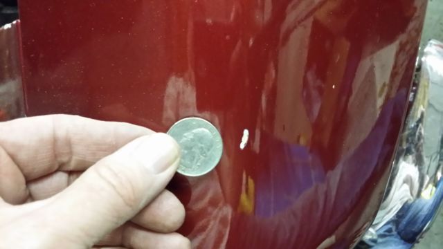 Has some scratches from being in the garage. Does not get driven enough. Just pulled out of winter slumber and started with fresh gas. Gas line rubber line has a leak which will be fixed. Carb was rebuilt a couple years ago. Always starts and runs very well.Very smooth runner. I will include photos of the scratch and chip. Paint is ok. I think it could have been even nicer but I didn't take it back to be buffed out. Car is a nice driver. Not a show car. Has had the floors replaced at some point and the trunk pan and a quarter panel before I bought it in 2006. 6/27//15 **LOWERED RESERVE IS AT 14,900.00** |