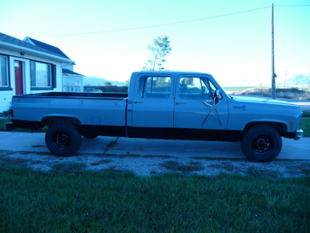 Super Rare 1979 Chevrolet C30 Scottsdale Pickup Truck This is an awesome truck and I have no desire to sell it for any reason other than I am back in school and need the money to support my family while in school. V8 454 Big Block that runs great and still has tons of power!!! Automatic 3 speed transmission that shifts great! About 176,000 miles with tons of life left (leaks some fluids, o more or less than other vehicles with this many miles) Rare 4 door Crew Cab with full back seat! (3+3) Full 8' Bed Trailering Special!!! 1 ton w/ extra leafs springs Larger 14 bolt rear end Larger 3.5" brake shoes in 16" wheel drums 2 Wheel Drive Air Conditioning (might need charged) Dual gas tanks (only drivers side tank is hooked up but would be a simple fix to hook the passenger side up) Inline electric fuel-pump Some holes in the exhaust including mufflers Body is mostly straight with very little rust (1 spot through on passenger side of the bed just behind the wheel well, ome in floor pan) 4 softball size dents (drivers side rear bed, assenger side front fender, wo on top of cab) Tailgate has several small dents and dings. A few smaller dents and dings as seen in pics Crack in windshield Heavy Duty Plastic Bed-liner Fresh Paint Job (This paint job is home done and is NOT show quality, t has several runs and is quite rough, ut protects from the elements and looks good from several feet away (see pictures)) Interior is stock and clean with saddle blanket seat covers Tires have great tread (but are about 10-15 years old) Overall this truck is a tank and is absolutely awesome!!! This is the ultimate all around truck for camping, orking, owing and more!!! It was special ordered from the factory and I am only the 3rd owner. It runs and drives great, owever it is not a show truck, t is a simple daily driver with 176,000 miles and is NOT perfect! Sold AS IS. Call or text Shane @ (208) 760-0726 with any questions (Please call/text between 8:00am and 9:30pm MST, f I don't respond immediately I will get back to you) |
