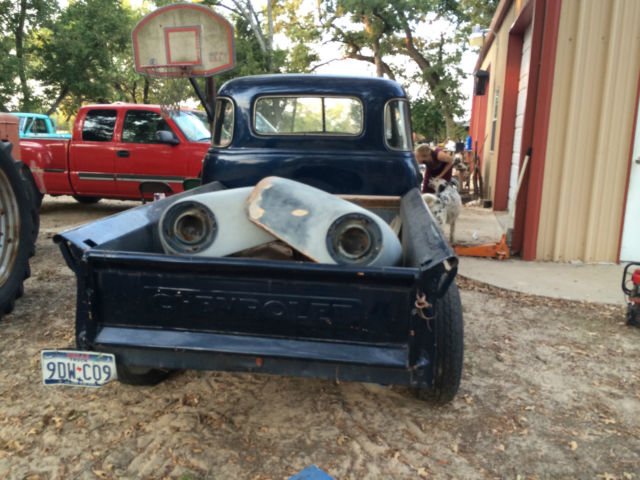 | 1950 5 WINDOW CHEVY PICKUP, ITTING ON MED 80S CHASSIS, OWER STEERING, ISK BRAKE, 55 OLDS WITH AUTOMATIC. MOTOR TURN FREE, AVE NOT TRIED TO CRANK. NEWER LOOKING DUEL EXHAUST. FIRE WALL CUT. AS YOU CAN TELL BY PIC WOULD MAKE A GREAT REBUILDER OR RAT ROD. NEW GLASS AND RUBBERS, ASSENGER GLASS IS CRACKED. |