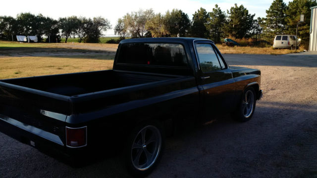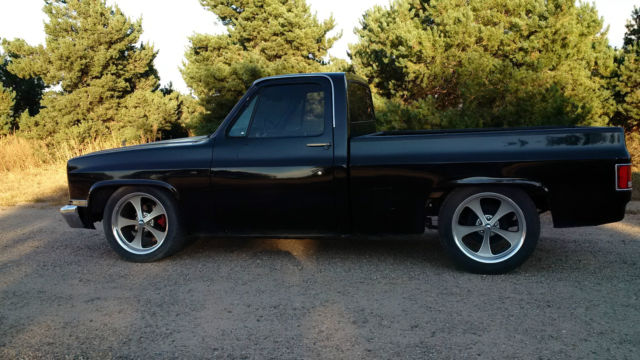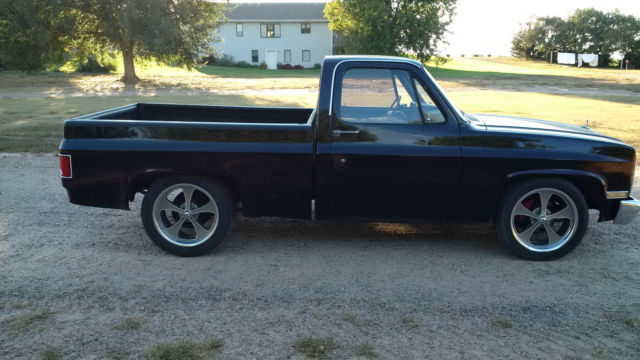Up for sale is my 85 C10. Has the factory 305 motor with Edelbrock carb and intake. I bought the truck from Berserk Custom Paint in OKC back in April with new paint job. Not show quality paint but looks good. Since then I've added a brand new Jegs aluminum radiator, 0in Ridler 645 wheels, teel roll pan in back,new 1piece rear window with 10% tint and a DJM rear axle flip kit and I cut the front coil springs to match height. Just had it professionally aligned and put 2 new Belltech nitro drop shocks in front.For some reason it sits a little lower on drivers side, as that way when i bought it. It might just need a new leaf spring on drivers side ($70 from LMC Truck) I just dont have time or space to work on it. Odometer shows 35,000 but does not turn also speedometer doesn't work. A/C blows cold but not much airflow probably needs new blower motor not sure if heater works. Great little truck, ets lots of compliments.