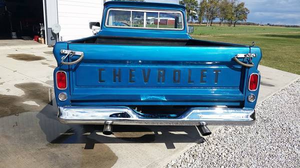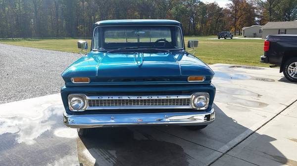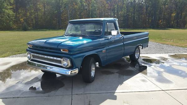 True barn find! 1966 Chevy C10 with 350 auto under the hood. New gas tank, uel lines, delbrock 4 barrel carb, ront brakes and lines. Also have brand new solidaluminum rims and bumper. New seat cover with carpeted floors, nd an AM/FM CD player with amp. Solid refinished wood bed with no warps or rot. Runs and drives good. Solid body with older restoration. Wouldn't take much more to make it a show truck! On Oct-18-15 at 07:07:49 PDT, eller added the following information: Truck is a long bed, oes not have power steering and has drum brakes