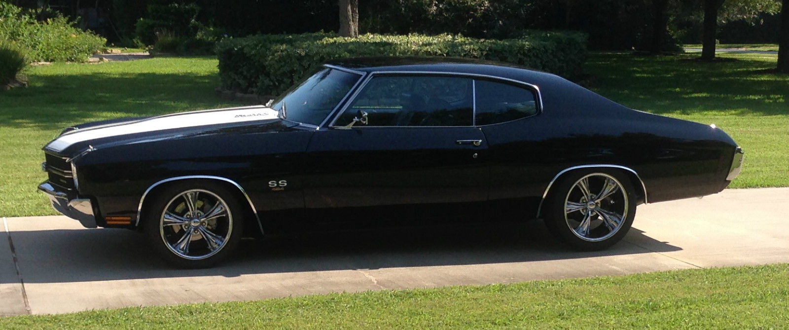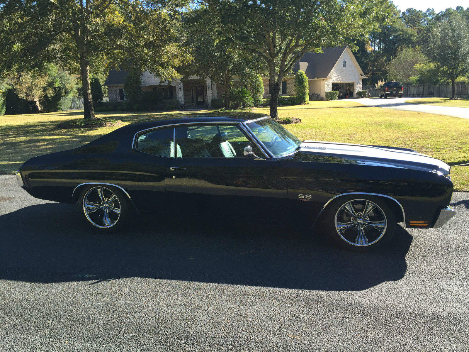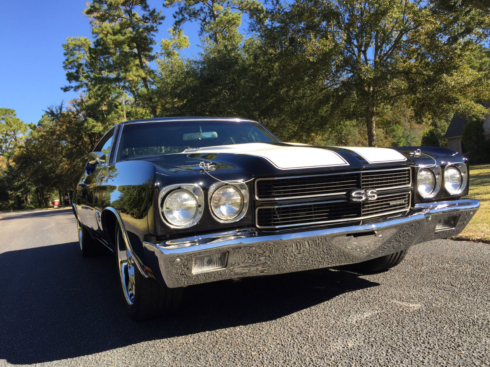 | 1970 Chevrolet Chevelle SS 454/6-SpeedBlack Exterior. White Rally Stripes with Black Interior454 with factory aluminum intake manifold. roller cam. headersRichmond 6-Speed manual transmission12 bolt. posi rear-end with 3:55 gear2. 72 miles post restorationVintage Air HVACThis is a beautiful 1970 Chevelle SS 454. If you want the nicest chenille in your car club or at the local car show - this car is for you. And best of this car is a driver. |