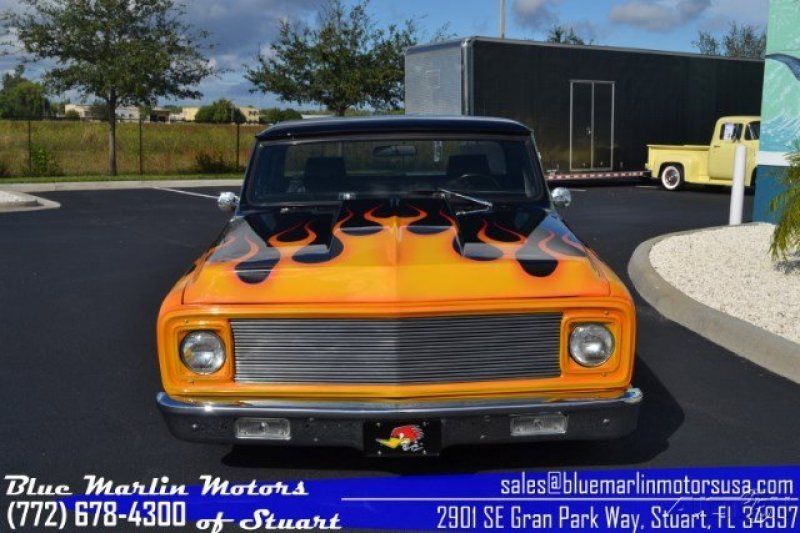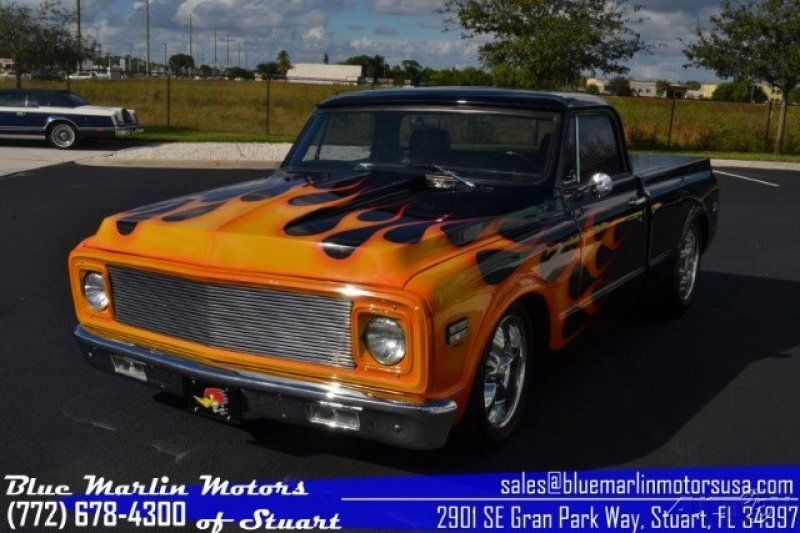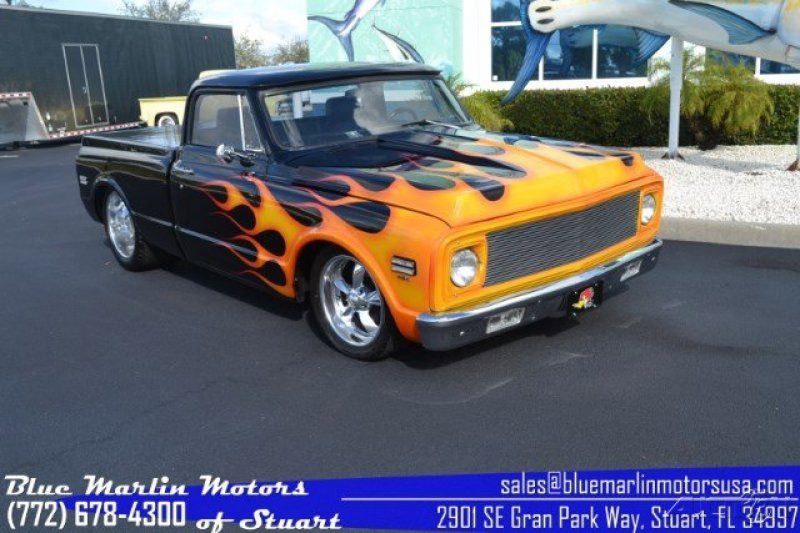 | 1971 Chevrolet C10 Pickup – The Pro Rat If you’re looking for a killer truck that will turn heads at shows or ANYWHERE it goes. stop right there. Take a look at this customized 1971 Chevrolet C10 offered for sale by Blue Marlin Motors. This truck is bad to the bone. and it’s not afraid to let you know it. either. Under the hood is a 454 cubic inch Chevy V8 that’s got more chrome on it than any engine we’ve ever seen. The truck sports power steering. power brakes. and even air conditioning. It was built for comfort and cruising. despite the big block power plant. Atop the chrome intake sits a pair of Edelbrock 500cfm carburetors. delivering fuel to the eight big cylinders. If you’re REALLY feeling racy. the new owner will also receive (if they wish). a second custom painted hood that has a cutout for a Weiand 6-71 blower. Topping the blower is a pair of Holley 850 cfm carbs. pushing the output well north of 600 horsepower for the truck. To keep everything stable. there’s a custom back halved frame with a Ford 9 inch rear end. The wheels are custom-made Boyd Coddington Smoothie IIs that are 18x7 inches in the front. and an amazing 20x15 inches in the rear. They don’t get much wider than this – and the shortened bed is tubbed to accommodate the new shoes. Everything is professionally done. and a set of four-wheel disc brakes ensure that the big wheels can stop. too. Rear tires are 31x18x20 Mickey Thompson Sportsman S/Rs. On the inside. custom bucket seats and a unique center console for the B&M megashifter are the highlights. but if you look in the dash. you’ll notice more. A unique set of red digital gauges give you a readout of the truck’s vital signs. The top is chopped 4 inches as well. creating. along with the bucket seats. an atmosphere of a cocoon. This truck holds on to you. and you’ll want to hold on to it as well with all that power at the command of your right foot. The build on this truck has travelled approximately 1. 00 miles since it was finished in the early 2000s. The former owner usually trailered the truck from show to show. so it has not seen track time or abuse. If you’re ready to get behind the wheel and start winning trophies. give us a call here at Blue Marlin Motors USA! We can help you arrange financing with our favorite credit unions with rates as low as 2. 5%! Call for more details. -Team @ Blue Marlin Motors USA 772-678-4300 |