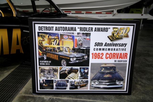 This custom wagon was featured at the 2013 Detroit Autorama Ridler's Ball and at the 2013 SEMA Show in Las Vegas. Custom paint and signed by automotive greats. Custom gold and black vinyl interior. Rear-mounted 146ci Flat 6 engine with an automatic transmission. The previous owner of this handsome wagon owned it for over 30 years and it was always garage-kept. It benefited from new custom interior, ustom-made and correct offset Rocket Racing wheels. The engine and transmission were completely gone through, nd it received new brakes and a new driveshaft. The Autorama crew wanted to make the car worth representing the 50th Anniversary Ridler Award with this gorgeous 1961 Corvair wagon. Most of my cars sell before the auction ends, o if you would like to make a serious offer please call 913-908-7223