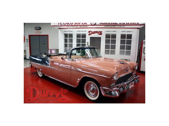 | DESCRIPTION vehicle overviewPHOTO GALLERY vehicle imagesOTHER additional informationPRINT this listing1955 Chevrolet Bel Air 2 door Convertibleduffyscollectiblecars1195 Boyson RdHiawatha. IA 52233Call Us Today!(319) 364-7000Ask ForKeith or JamieAsk Us A QuestionYear: 1955Make: ChevroletModel: Bel Air/150/210VIN: V055K038854Stock Number: 12912Mileage: 3Transmission: AutomaticEngine: 8 Cylinder. 4. 34 LExterior Color: BlackInterior Color: OtherTitle: ClearVehicle 1955 Chevrolet Bel Air 2 door Convertible 1955 Chevrolet Bel Air 2 door Convertible. This restored to original car is as solid as they come with a nice older restoration. It is finished in the great combination of Shadow Gray and Coral with matching interior. There is a power operated newer white vinyl top. nail guards on the doors. a front bumper over rider. painted steel wheels with hubcaps wrapped in G78 wide white wall tires. and the iconic Continental Kit. The stainless. chrome and. glass are superb. It is powered by a correct 265 V8 with a Power Glide 2 speed automatic transmission. Equipped with an original AM radio along with an AMFM cassette player in the glove box. tissue dispenser. dual outside rear view mirrors. heater defroster. and there is an auxiliary fan mounted to the radiator to eliminate over heating in parades. The engine bay has been detailed and the paint is freshly buffed and waxed. This beautiful restored car is a splendid example of Chevrolet’s entrance to the V8 powered era. The Top 10 Reasons to Buy From Duffys. 1) Over 30 years in the collector car business - Experience - Reputation - Integrity - High degree of repeat and referral business. Over 1/3 of our customers are sent to us by previous satisfied customers. 2) Trained and dedicated employees offering full service with high standards of excellence. Our sales. office and reconditioning staffs are experts in collector cars and always available to answer any questions. 3) 100 pt. checklists : We are the only known dealership to thoroughly inspect everything on the car both mechanically and cosmetically. and disclose details by the numbers. 4) Financing: You will find our financing one of the most convenient in the Business – 100% financing available for up to 72 months with competitive interest rates. (With approved credit) 5) Full service dealership offering sales. service. parts. shipping. financing. appraisals. export. gift shop. tours. and parties. 6) Accurate and complete description of cars including decoding of drive train and fender tag. 7) High rate of repeat customers. due to our excellent inventory selection. full service department. and knowledgeable sales staff all designed to give each and every client a positive buying experience. 8) Gold Seal Warranty Available : Unique to the collector car business. 3. 00 miles and 3 months on what you can't see. 9) At Duffy's we offer a full line of quality collectible cars from the 1930's to the 1980's. from street rods. to muscle cars to Model A's and everything in between. 10) Financially responsible and financially solid. Top Dun and Bradstreet rating and a business that won't be gone a year after you buy your car We do not make second chance offers. If you receive a second chance offer that appears to be from us. please contact us immediately to report it and protect yourself from a possible scam. Have a question about this vehicle or how our buying process works? No problem. give us a call and we'll be happy to discuss just how easy it can be. 100% Financing available with low rates with approved credit. We are happy to assist with shipping of this unit worldwide. just tell us where it is going and we are happy to take care of the details. Photo GalleryHere is a sweet 55 Bel Air convertible in a classic 50s color combinationYou can't help but love the look a Tri5 ConvertibleThe Continental kit really beckons to days gone by. The wide whites really set this car offThe top is nearly newThe two tone interior really highlights the carDuffy's can help finance your dream car if neededThe tissue tray is another great throw back to the day of this cars original gloryThe engine bay is neat and tidy and ready for showDuffy's can arrange shipping wherever you want to go. Additional InformationWarrantyAS IS - No Warranty This car qualifies for a 12 month 12. 00 mile limited warranty. Ask sales for details. Terms & ConditionsTerms and ConditionsFee and Tax Information: Only sales to State of Iowa buyers will be charged the Iowa Use Tax. All other States will be paid by the buyer when the car is registered in the buyers State. A $215 documentation fee and a $15. 00 Title fee apply to all vehicles. Winning bidder must contact us within 24 hours of auction end. and make arrangements for payment at that time. A Non-Refundable $1000. 00 deposit is due at the time of purchase. The remainder is due within 5 days of Auction end. If no contact is made within 24 hours we reserve the right to re-list the vehicle. sell it to the next high bidder. or sell it otherwise. Most banks and credit unions do not finance vehicles older than 1995 or with more than 100K miles. However we offer Financing options through some of our preffered lenders please call for details. Buyer is responsible for pickup or shipping of this vehicle. If you wish to have it shipped using a service. we will gladly cooperate. you can locate shippers by doing a search for `auto shippers`. If you are not sure about something. Please ASK. Do not assume anything not listed is included. We reserve the right to cancel bids for excessive negative feedback. We reserve the right to end the listing if the vehicle is no longer available for sale. Please do not bid on this auction unless you are serious about owning this vehicle. All non-paying high bidders will be reported to eBay. and negative feedback posted. PLEASE ONLY BID WHAT YOU ARE WILLING TO PAY. WE DO NOT SEND SECOND CHANCE OFFERS!! IF YOU RECIEVE A SECOND CHANCE OFFER CONTACT THE STORE RIGHT AW