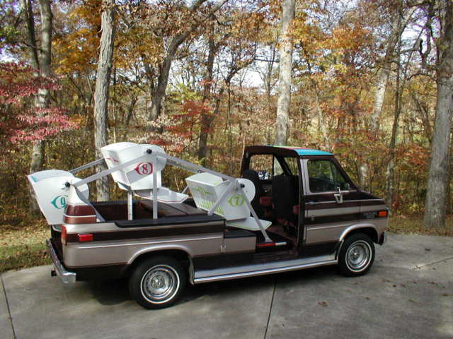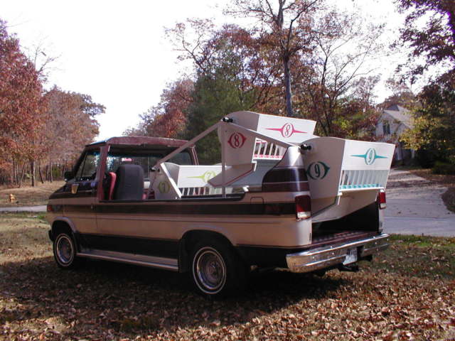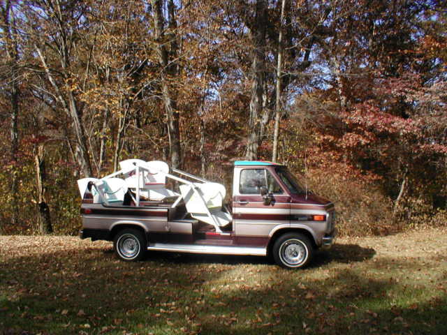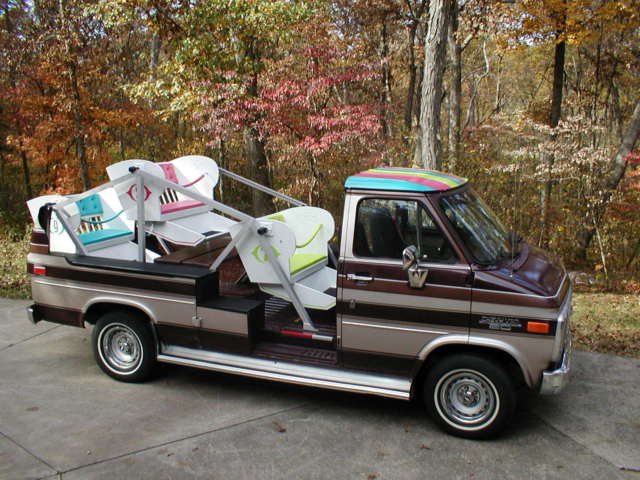 1950's - 1960's Carnival LikeFerris Wheel Chevrolet Unusual Ride1989 Chevrolet Conversion Van with most unusual carnival ride - Parade Ready - A thrilling ride for the passengers and an equal thrill to watch them.Three seats that swing freely as the vehicle accelerates or decelerates. The swing motion is adjustable for a milder ride. Seat restrains (hook and chain) provided in each seat. Recommend maximum capacity 6 children or 3 adults. This is not a ride for the over the road use. Would only be used in parades, ar shows or just for park use. 99% guarantee there are no other rides like it!The van starts good, rives good and stops good. The previous owner just replaced the windshield, uel pump, attery, uffler and tailpipe. It does need tires. They may only be good for parades and not recommended for a road trip. Van with only 157,000 miles - runs good. When the previous owner replaced the fuel pump, hey caused the gas gauge to quit working, have not fixed the problem.Should make a great parade vehicle. It also has a Reese hitch that could pull a float as well.The van with ferris wheel seats is no higher than the original conversion van was with luggage rack and will clear a standard 7' garage door opening.If you have a negative feedback or rating of "0" please e-mail me information that would indicate that you are a serious bidder so that your bid will not be disqualified. Sorry, ut there are some who just play games.