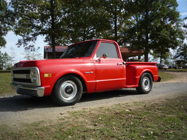 Up for sale today is my 1970 Chevy C10 custom truck. It is an extremly nice daily driver. This truck has the stance that you are looking for a 45 drop is provided with drop spindles and lowering springs in front and rear. The rearend locaterbar has been replaced that is required for these trucks being lowered.It has blazer wheels giving it the correct ofset so everything works and steers correctly with no rubbing. The blazer wheels have been wrapped with fresh paint and the poverty style hubcaps. Slightly wider than stock tireshave been used but there isprobably less than 40% tread left. The rearbumper is new and the front is very nice. One of the upgrades on this truck includes the vent window delete option for the 1 piece full doorwindows. They work nicely. The windows are tintedand all windows arein nice shape. The engine runs great and has an aftermarket aluminum manifold with a quadrajet carb and HEI ignition. I cannot say that thisis the origional engine butI was told whenI bought the truck thatthis truck has only 126xxx miles and that it was the orig eng/trans. ButI never checked the numbers myself nor canI say for certain the milesare 126,xxx.The trans shifts properly and neither show any signs that it wont last another 50k miles. There arefluid seepsbut nothing that will leave u stranded. The truck does have power steering and power frontdisc/ rear drum setup that stops nicely.It has an aluminum radiator with dual electric cooling fansThis will make anyone a great driver, all it a rat rod, ot rod, hop truck,or a awesome cruise night truck.Hidden led tail lights are just above the bumper line. Everything in this truck works and functions properly. There is no radio in this truck as the tone of the new flowmaster exhaust system was tunes enough for me. It sounds like a hotrod should!! The interior of this truck is extremely nice. The seat has no rips or tears in it and the carpet is clean. The seat has been recovered using period correct covers with the scroll marking in the vynal. The dash pad has a few weather cracks in it and the gauge pod has been screwed thru it. There was also a small hole drilled behind the gauge pod for the hookups. I have recently gotten back to some of my woodworking roots and have started making from scratch the custom wood floor that you can see in this truck. This is my first floor made from red cedar as most of you may know not only are these rot and bug resistant but they smell great too. Absolutely no one will have a floor like this in their custom truck. It was milled from Arkansas cedar andfinished to last with several coats of marine grade polyurethane. Both the top and bottom of the wood are finised. All new stainless strips, olts etc were used when this was done. This truck is not perfect nor is it concourse quality. I don't like mine that way. I want something I can drive, o burnouts with and not be afraid to drive to the store or to the shows. This truck is an attention getter no matter where it goes!! This is a southern truck yes there are a few rust places but the rockers cab corners etc that have been replaced. There are minor rust bubling up under the paint in the lower rear doors and a few rust thru spots inside the cab above the windshield. Although i have not seen any water inside the cab so I believe those issues tohave been delt with the last time the truck was painted. The truck is available by appointment if you wish to see it or drive it in person. If u wish to do so please call or text 870-917-4381. I am available most mornings or early afternoons. If there are any questions or u desire more pics please feel free to ask. This truck is being sold as is with no warranty whatsoever....with a clean title. Now for the business end of things, f u have to ask ur wife, irlfriend, tc please do so before u bid! I take the auction seriously as should you. Your bid is our contract so bid accordingly only what u have to spend! If you have less than 5 feedbacks please contact me prior to bidding. My last truck sold and went to the United Kingdom so I welcome international bidders but please contact me as well. I ask for a $500 deposit within 24 hours after the auction closes. As forthe remaining amount, have taken casheers checks, ostal money orders and cash in person. Make your arangements with meeither prior to orwithin the 24 hr period after the auction. I would prefur the truck be picked up within 7-14 days but also understand those arearangements do take some time so for those who need additional time please make those arangements with me. Full payment is to becompleted in 7 days.Please note any form of payment must clear before the truck is allowed to be moved. This truck runs and drives so if u so desire fly in and drive it home. Ido not forsee any issues that would prevent this. For anyone who wishes to have this truck transported those arangements are solely your responsibilitybut I am available to help load as needed.Im sure I have missed some things so feel free to ask. This truck is listed locally and I reserve the right to end the auction early as needed. I would be interested in offers but trades are not accepted. Thanks and happy bidding on this awesome truck, o not miss this one! |