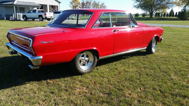 | 1963 Chevy Nova SS II. Just check out the photos of the vehicle. Over 25k invested. This little red Nova is backed with a nice Chevy SB 350 with a 355 rear end. Automatic transmission. Vehicle has tons of chrome under the hood and no detail was left out during the restoration. Alldocuments of work done to the vehicle and parts that were installedon hand.No power steering. Duel electric fans. Fiberglass hood. No rust with nice red paint. Vehicle runs and drives great.Miles show 98xxx but is exempt due to age of vehicle. Clear Ohio title on hand. |