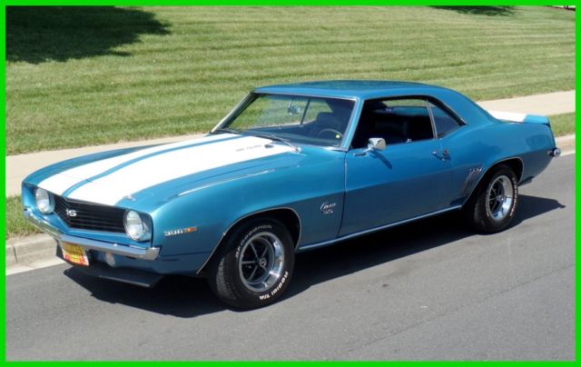'69 Camaro SS396, pectacular nut & bolt rotisserie restoration, Look underneath this car!) 396cid Mark IV Chevrolet Big Block V8@350+hp, ptional heavy duty TH400 automatic transmission, orrect 12 bolt rear differential, irror finish Lemans Blue paint with white stripes, unctional cowl induction hood with correct "Fresh air" air cleaner, atching Blue deluxe comfort weave bucket seat interior w/factory console, olded door panels & woodgrain trim, ptional fast ratio power steering, ower disc brakes, reat sounding Flowmaster dual exhaust, orrect SS big block magnum wheels w/fresh BFG radial T/As, ront & rear spoilers, ll new chrome & polished stainless trim, etailed engine & trunk. Great sounding, reat driving Big Block SS to show or just drive.