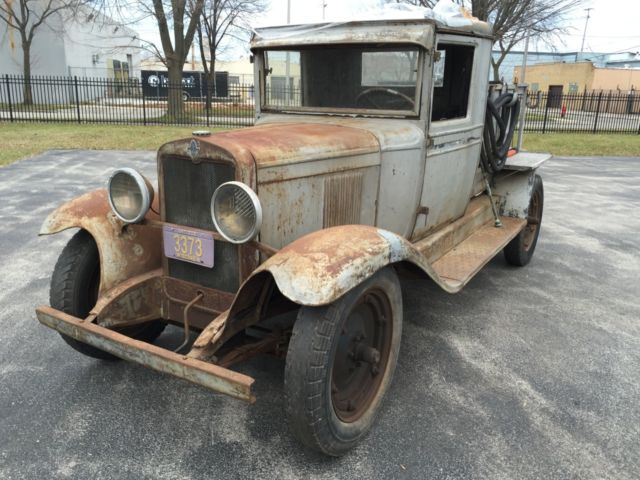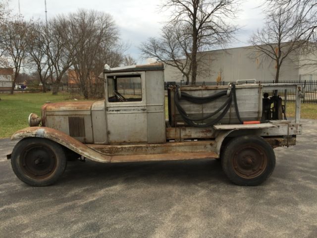 I purchased this rare 1929 1 1/2 Ton Chevrolet "International" truck ten years ago from a "picker" who had just found it clearing out a huge factory warehouse in Wisconsin. He was told it was parked there many years prior and had not moved in decades. I was drawn to it because of the original orchard sprayer setup and oak water tank as I live on a property with a very old apple orchard.After carefully checking it over and servicing it including the fuel, ooling and ignition systems it fired right up. I proceeded to actually use the truck to idle around my orchard for a couple of years spraying our trees and even washing the driveway. The tank holds water great once "soaked" like an old boat. However, e had a freak cold snap one year when the truck was outside and it froze the water in the sprayer pressure tank and popped the corner off (see photo.) While this would be an easy fix to replace it with another tank I just decided to throw the truck into my warehouse because I was so ticked I let this happen. So I've decided since I haven't fixed it yet that I should just sell the truck and free up the space here. Some quick history on what the truck is: This model was new for 1929 and Chevrolet hung their hat on the fact it had the big six cylinder, four speed transmission and four-wheel brakes. The engines were the first of the legendary "Stovebolt" sixes that have proven to be one of the best engines of all time. They called this truck the "AC" series "International Utility Express." This particular truck was built right down the road in Janesville, isconsin as indicated by the "21" prefix on the chassis number so it has lived within 100 miles of its birthplace for all of its 86 years. The coolest part about this truck is the orchard sprayer and huge oak tank. Even though it needs that new pump pressure tank (any cast iron air cylinder would work) the PTO driven pump still works like brand new. It ismesmerizing just to sit and watch it! Of course since this is a cab and chassis truck you could always put whatever you want in its place from a flatbed to a popcorn stand. Mechanically this truck is amazing. Even after sitting for the last 8 years or so with fresh fuel and a battery it fired right up. The transmission works great in all 4 forward gears and reverse and the PTO engages and disengages like butter. The parking brake works, s do the "dry" four wheel brakes. Oil pressure is great and there is virtually no blow-by. It runs cool, he battery charges, nd even the speedometer works. The tires are easily 60 years old so it could really use a new set if you plan to drive it anywhere. The body is rock solid but as you can see has surface rust. It was originally a nice navy blue color as seen on the cowl and showing through the brushed-on silver paint somebody put on decades ago. The original leather roof blew off when I was driving it years ago but the structure is great as is all the wood in the cab and bed. The driver's door glass is cracked but still goes up and down fine. The original leather on the seats is there but like cardboard and falling apart- but still usable! The exhaust head pipe is OK but the muffler has rusted off. I DO NOT HAVE A TITLE but I do have a bill of sale from when I bought it and will provide one to the new owner as well. I will not ship it but I will help with any shipping arrangements you make. And, ost importantly I am not looking for any trades- this is being sold solely to make some room in my building otherwise I'd keep it forever because it is just a neat old truck. When was the last time you saw one? Inspections are welcome any time before the auction ends and before you bid.I'm happy to take any additional photos or answer any questions from serious bidders. Please also check out the videos below to see this truck running and driving as well as the sprayer pump in operation. Thanks for looking. Drive Video Click HerePTO Sprayer Pump Running at Idle Speed Engine idling and gauges showing oil pressure with engine revving |