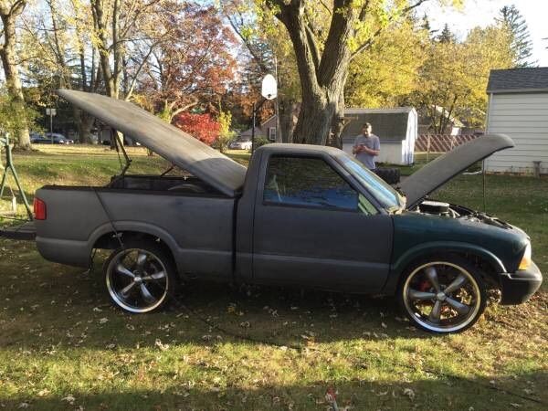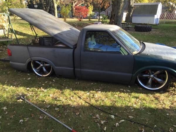 350 Chevy motor out of a 1999 full size, resh rebuilt smallcam. Turbo 350transmission; transmission has 10,000 miles on it. Brand new posi rear end, 73 gears; 0 miles on rear end. Disc brakes all around. 22" rims, ave never seen the road. Full air ride, ndependent switches and cylinders. Air ride is fully functional. Truck was running and driving before the rear end went in; now just needs to be wired and exhaust to be fully functional. Will not run right now, o wires. Over $15,000 invested. Fully boxed frame from 1994, ody is from 2002. Tags: custom s10, ir ride, 8, 50, 73 gears, ot rod, ustom truck, 2in rims, 10 air ride