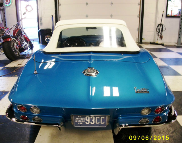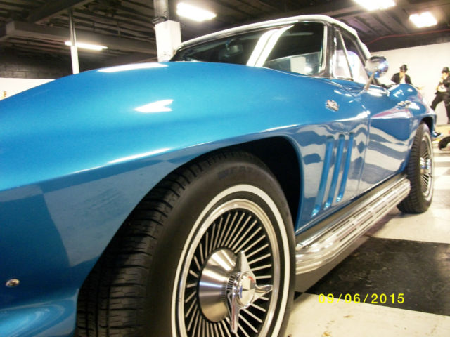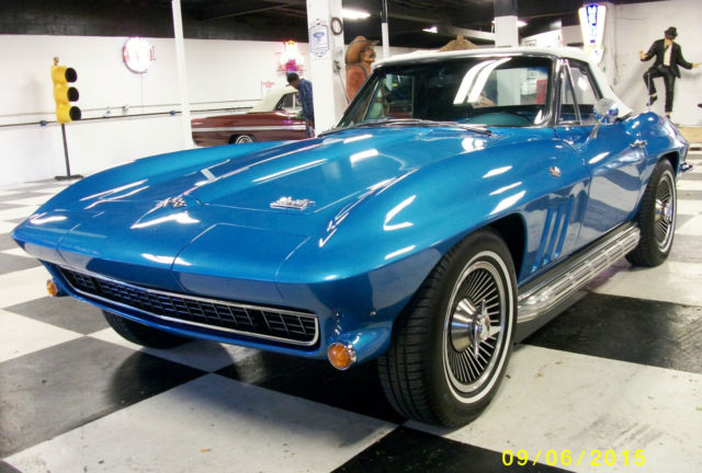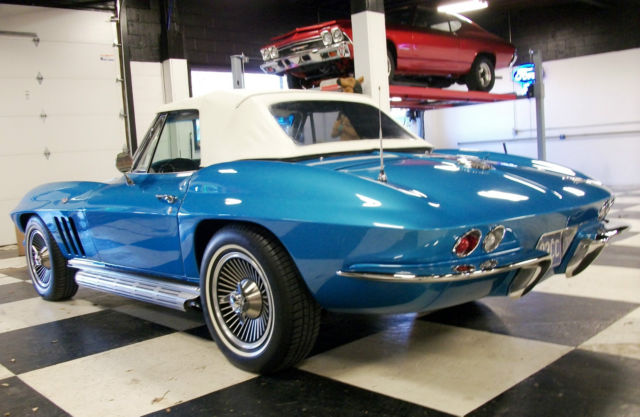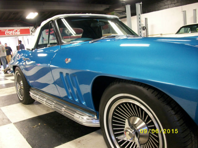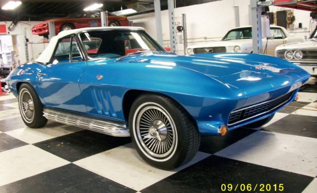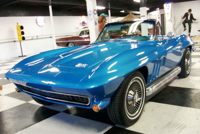 Scott C's Classics and Collectables has a Beautiful 1966 Corvette Convertible up For Sale... This Car is Powered By a 327 Chevy V8 and a # Matching 4 Speed Manual Transmission... # Matching 12 Bolt Rear End with 370 Gear Ratio... Original AM/FM Radio and a CD Player Added Behind Passenger Seat... Manual Steering... Manual Brakes... Nassau Blue Exterior with White Interior and White Convertible Top... Knock Off Alum Wheels... Side Pipes...33,435 Original Miles... This is an Excellent Driving Car With the Classic Corvette Sound... Nice Fender, ood and Door Gaps... Paint is in Great Condition But When Repainted Has Some Dust Spots in Paint... For More Info or Pictures Please Call or Text Walter at 724-570-0155... Terms and Conditions of Sale We take time to carefully describe each vehicle and include a substantial number of photos. However, t is very important to keep in mind that these vehicles are pre-owned, ot brand new. After careful reading of the entire description, ather than making a potentially incorrect assumption, f any statement or comment is unclear, r if you have questions, lease e-mail or call us prior to bidding. Originality Disclaimer While we are happy to show our customers the casting numbers, tamping on the motor and V.I.N numbers on the ca, e CANNOT guarantee that the motor is in fact the original. There is always the possibility of re-stamped motor, nd as technology advances there will be even more. Any representations made by us are "to the best of knowledge." The entire risk as to the originality of the vehicle is with yo, he Buyer. We CANNOT guarantee the originality of these vehicle, ncluding but not limited to : the engin, he transmissio, matching numbers, olor chang, he fram, he documentatio, tc. The mileage is represented to b, to the best of knowledge, ut not guaranteed. All Pa Buyers must pay 6 % sales tax! All successful winning bidders will be responsible for a non-negotiable $120 Document Processing Fee in addition to the winning bid amount. Full payment must be received within 7 business days of the end of auction. Payment must be either by cashiers-check, ash (In-Person) or certified funds. If funds are not received, nd an alternate arrangement has not been made, he vehicle can and will be made available to other potential buyers on a first-come, irst-serve basis. Scott C's Guarantee We have disclosed as much information as possible about this vehicle and aim to only carry quality vehicles. However, e recommend that all buyers conduct an inspection either in person or through a qualified professional third party inspector. Prior to delivery, f such inspection reveals a substantial discrepancy between the information contained in the listing and the actual vehicle, e will correct the problem at no charge or work out a compromise. Shipping We value your business and want you to be completely satisfied with your Ebay buying experience, rom purchase to delivery. As a value added service we will assist with shipping arrangements however, he buyer pays all shipping costs. We do not have any affiliation with, r interest in, ny transportation companies and all questions or concerns should be addressed directly with them. Disclaimer All vehicles are sold As Is, ith no warranties expressed or implied, y seller. Vehicles come with books and/or manuals only if pictured in the included photos or if stated in the ad. As with any used vehicle, inor signs of wear may become more obvious under close inspection, uch as small chips or nicks, ight scratches or minor abrasions, heel scuffs, nd other indications of normal wear and tear. We will not and cannot be held liable or responsible for these issues. Non-paying bidders, nqualified bidding, id shielding, uction interference or any type of harassment, ill be dealt with according to eBay Rules, ocal law, nd may include, ut are not limited to, egal action and applicable fees, ose of deposit or any other necessary costs. We reserve the right to cancel bids and/or our auction at anytime for any reason. PLACING A BID ON THIS AUCTION, ONSTITUTES ACCEPTANCE OF THESE TERMS AND CONDITIONS AND ACKNOWLEDGMENT THAT YOU HAVE READ AND UNDERSTAND ALL THE INFORMATION PRESENTED.