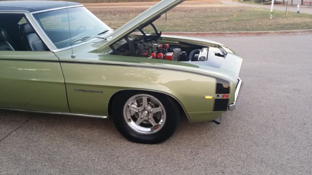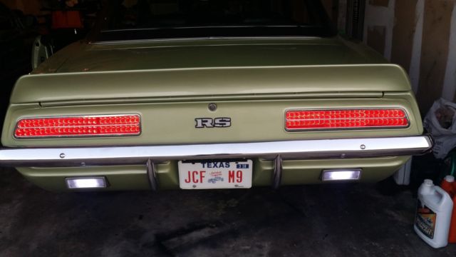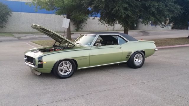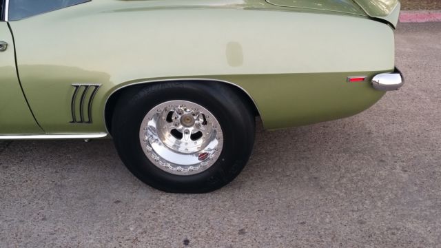 1969 RS Camaro/Pro - Touring with a 632 hp Lsx454 / ls7 with a th350 transmission with a Hughes converter great frost green paint and great dark green interior Racepak dash in a Detroit Speed Dash Insert, etroit Speed mini tube kit, etroit Speed Core Support closeout panel and Detroit Speed Subframe Connectors Billet Specialties Comp 5 wheels 15x3.5 in the Ft and 15x12 in the rear 325 / 50 / 15 in the rear and Aerospace brakes on all 4 corners Strange shocks on all 4 corners, trange 9 inch ford rearend with 35 spline axles true trac posi unit Aeromotive fuel tank, eromotive regulators and Aeromotive fuel pump in tank that will support 1000 hp carb or fuel injection LED lights and turn signals and reverse lights and day time running lights you can dive the car any where everywhere much more to list if you have any questions 214-742-9703 I reserve the right to stop the auction at anytime.