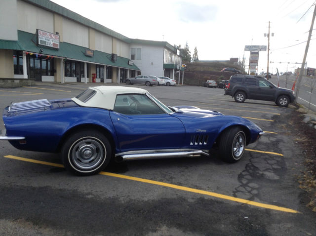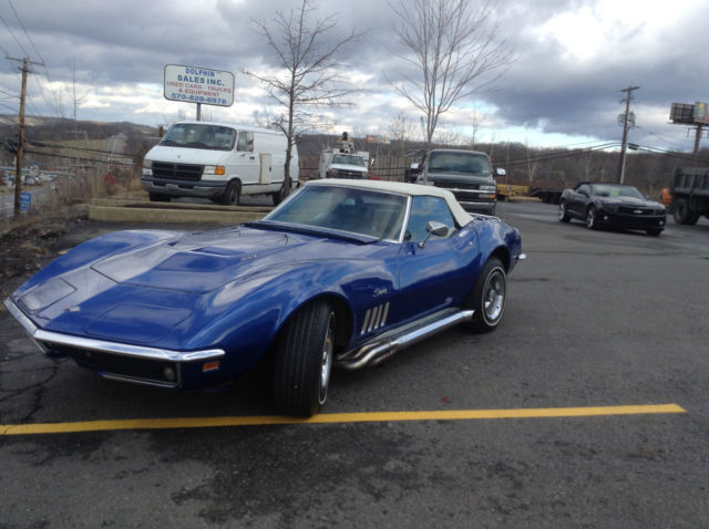 1969 Chevrolet Corvette Roadster L36 427/390 HP 4 Speed Numbers Match Factory Hard Top, ooker Side Pipes, 8,000 miles This Corvette was purchased in Carbondale, A and has remained in Northeast Pennsylvania since then. Partially restored in 2001. The color was changed to Metallic Blue from Daytona Yellow. We are the second owner and have owned it the last 14 years. We have the original title and tank sheet. Please feel free to email us if you would like any further information. Thank you! |