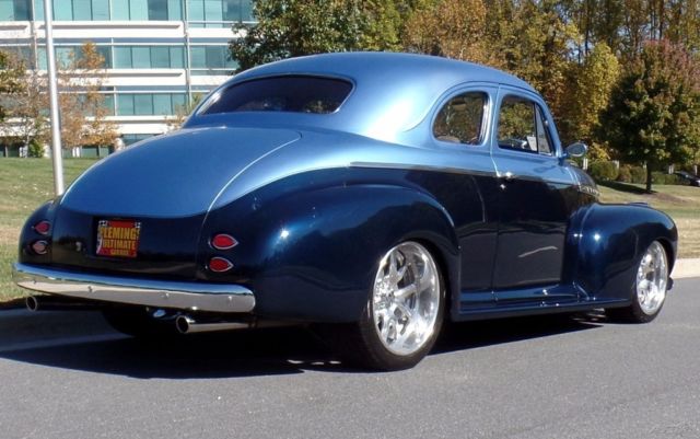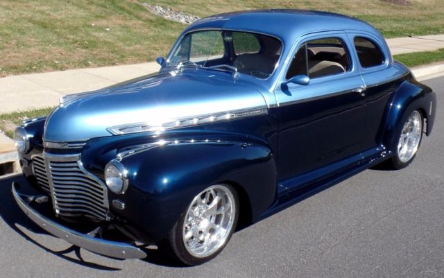 '41 CHEVROLET PRO TOURING Spectacular multi year-no expense spared frame off restoration on this real steel car (not a kit) every nut, olt and seal (Look underneath !) Classic styling but modern components make this not only powerful and easy to drive but handle as well, M ZZ4 V-8 crate engine with aluminum heads and Weber pro fuel injection @400hp, M 700R4 Overdrive automatic transmission, ord 9" HD rear w/3.50 ratio rear differential, irror finish Diamond and Navy blue metallic Two tone paint clear coated and show waxed, ll new custom Tan leather bucket seat interior including headliner-carpets-door panels-etc, ustom full length color matched console, lassic instruments dash with full array of gauges, ll new chrome-bumpers & polished stainless, pgraded QA1 coil over suspension and tubular control arms, ilwood power 4 wheel Disc brakes with cross drilled rotors, ast ratio modern power rack and pinion steering, ustom built Raceline 20" + 18" polished alloys with hi speed radials, reat sounding stainless Sanderson shorty headers and stainless dual exhaust, e-cool oversize Aluminum radiator w/electric fans Hidden digital sound w/AM/FM/CD/Ipod/MP3 + Custom molded in 4 high end speakers, pgraded modern air-conditioning and heat with polished compressor, arch performance serpentine belt + billet pulley system, ll new wiring harness front to rear, pgraded chrome tilt steering column and 3 spoke billet-color matched leather steering wheel, ower windows AND Power locks, ED taillights and parking lights, eautifully restored, his is the way to buy a classic, ot have to wait 3 years to drive it and only showing 3,979 since the restoration!Financing available on this classic '41 Chevy